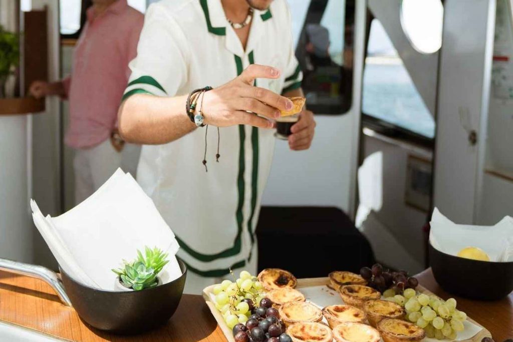 정통 포르투갈 커피, 생수, 청량음료, 포르투갈 맥주, 비뉴 베르데 화이트와 로제, 화이트 상그리아, 포르투 토닉 등 프리미엄 음료(무제한)를 오픈 바에서 마음껏 즐겨보세요. 포르투갈 대표 음식인 파오지호, 구운 땅콩, 신선한 포도, 파스텔지나트리 등의 뷔페와 완벽한 조화를 이룹니다.