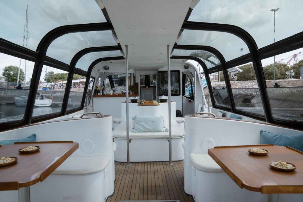 고급스럽고 매우 편안한 보트에서 여유롭게 아침 크루즈를 즐기세요. 타구스강을 따라가며 리스본의 숨막히는 파노라마 전망과 강변의 상징적인 풍경을 감상할 수 있습니다.