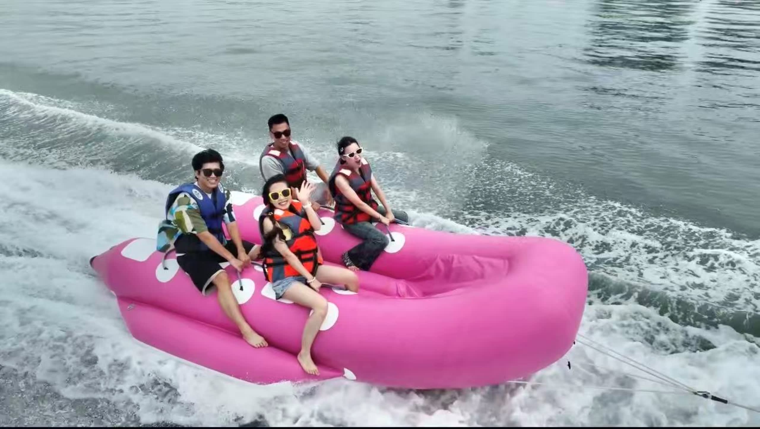 * 해상 오토바이: 스로틀을 돌려 파도 속을 질주하며 초보자도 신나게 즐길 수 있습니다. 해상 패러세일: 하늘로 날아올라 푸른 바다를 내려다보며 찍는 사진마다 멋진 장면입니다. 해상 소파: 바다에 바싹 붙어 부드럽게 흔들리며 편안하게 바닷바람을 즐길 수 있습니다. 바나나 보트: 팀을 이루어 '파도타기'를 즐기며 물에 빠져도 정말 즐겁습니다. 해상 서핑보드: 초보자와 숙련자 모두에게 적합하며 파도 위에서 새로운 자신을 발견할 수 있습니다.
