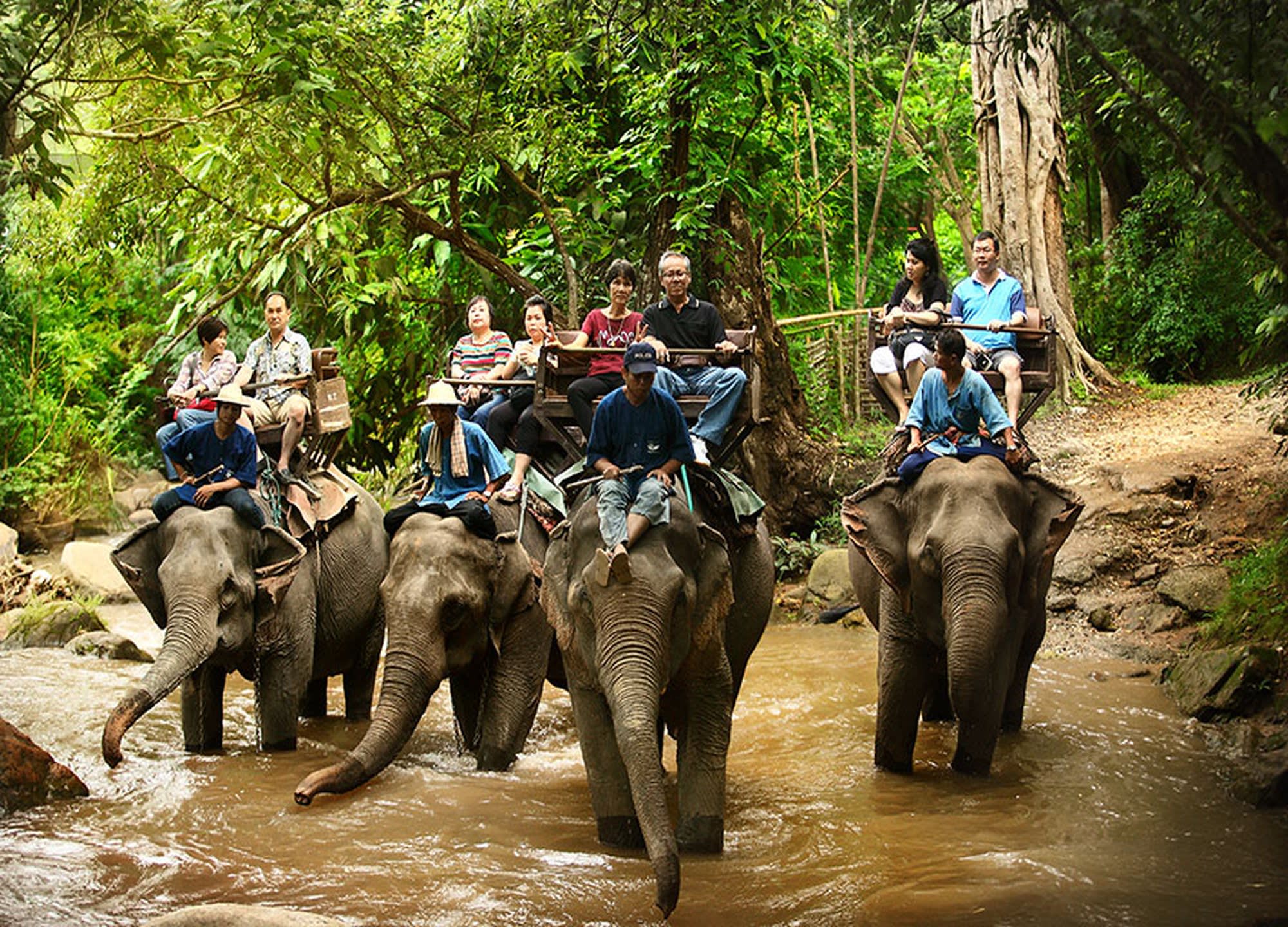 코끼리와 함께 숲 속을 걷고 개울에서 코끼리를 관찰하거나 진흙 구덩이에서 같이 활동하는 반일 투어 활동 프로그램 등 다양한 프로그램이 있어요.