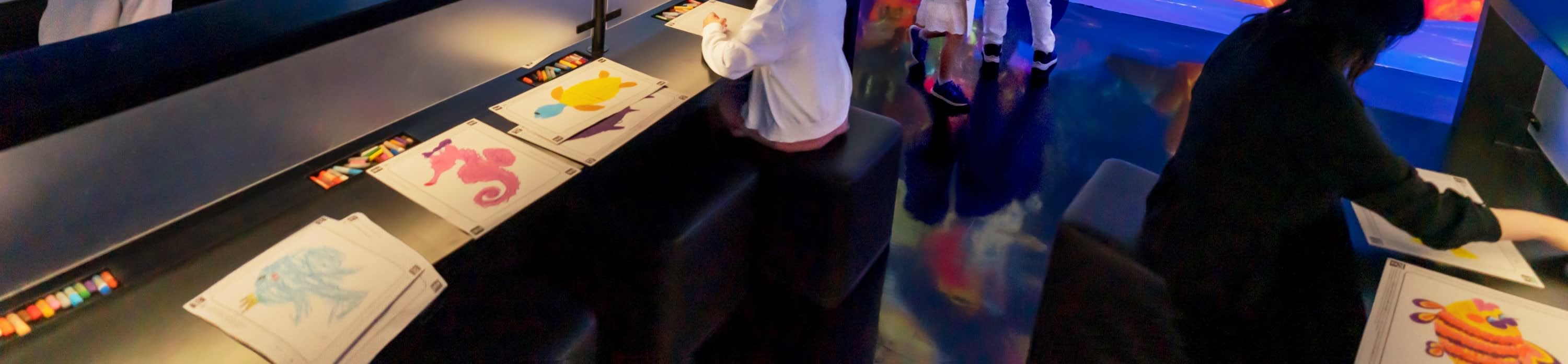 * "스케치 아쿠아리움: 연결된 세계" 등 '공동 창작'을 컨셉으로 한 다양한 교육적 예술 작품에 참여하고, 직접 그린 물고기가 눈앞의 거대한 수족관에서 헤엄치는 모습을 감상해보세요