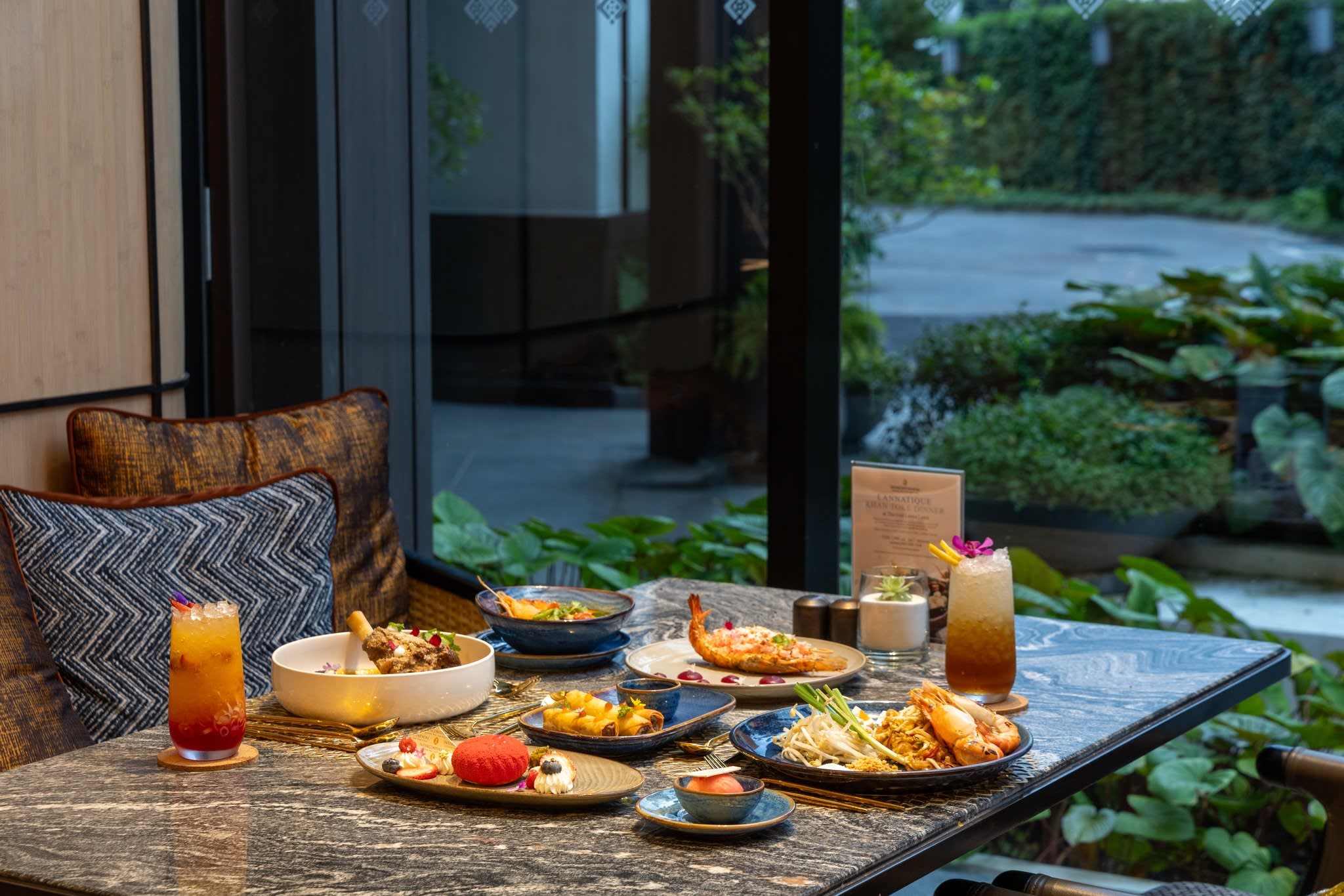 치앙마이 중심에 자리한 인터컨티넨탈 치앙마이 매핑 호텔 1층 더 갓 란나(The Gad Lanna) 레스토랑에서 제공하는 디너 세트입니다.