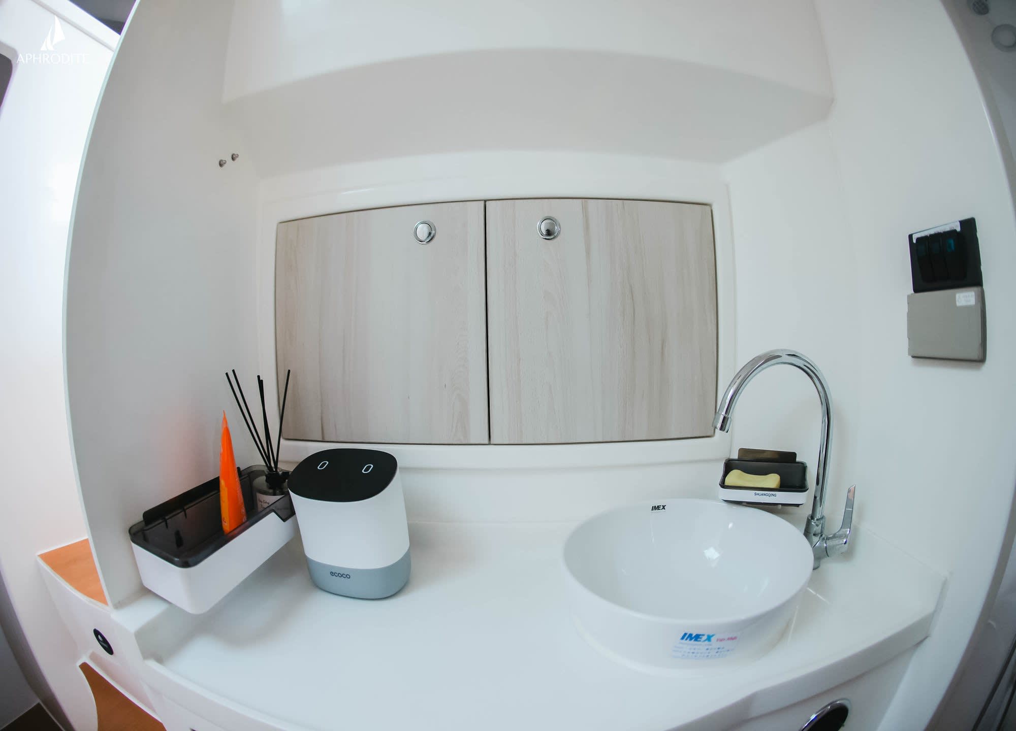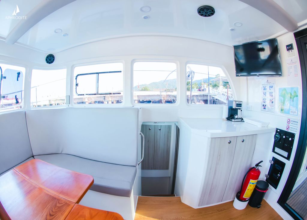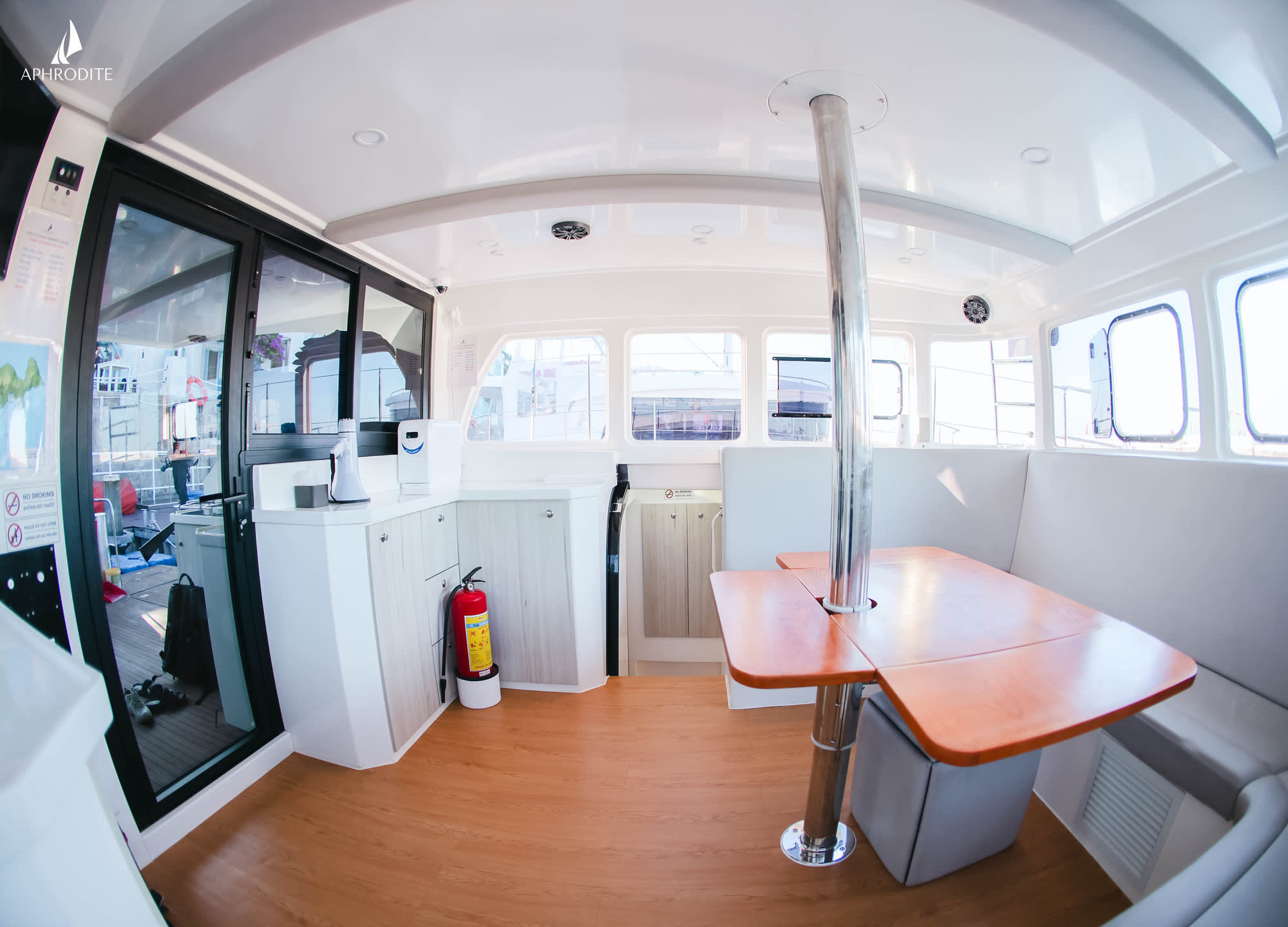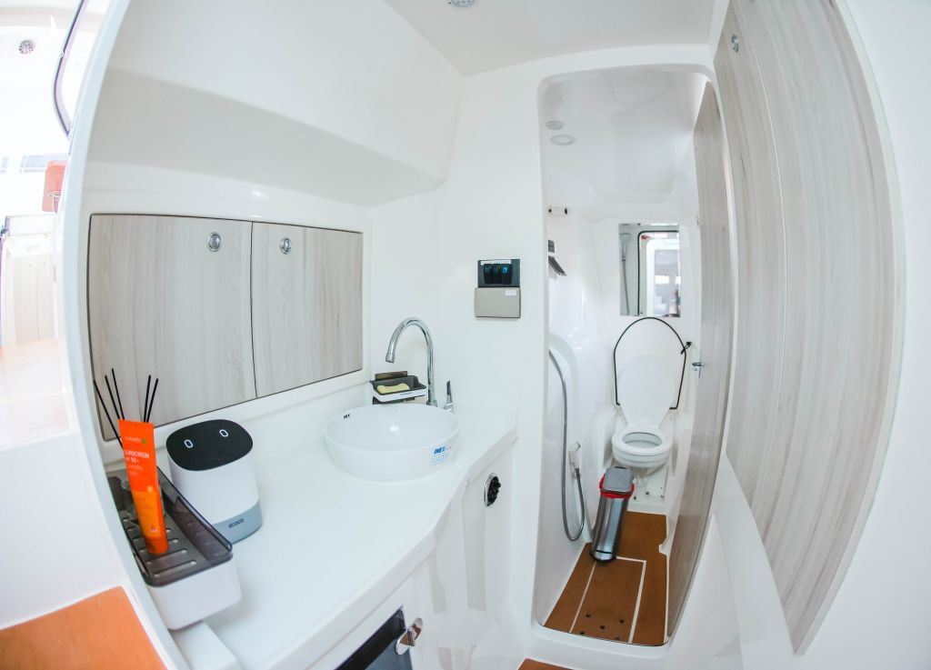 ※ 선실 오른쪽, 왼쪽 밑에 있는 2개의 간이휴식, 샤워실 공간에서 환복 가능합니다.