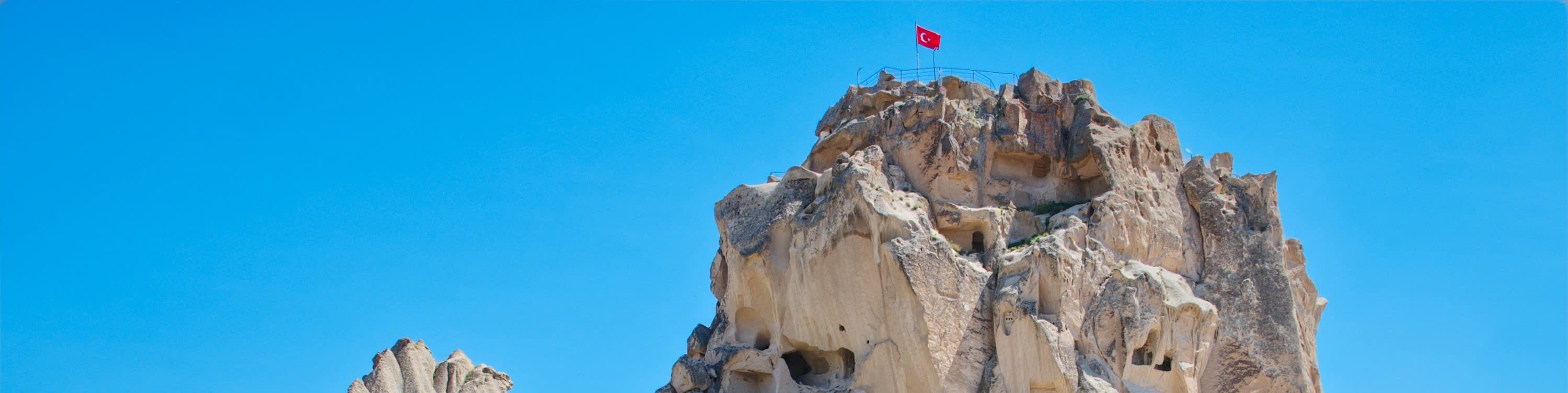* 파노라마 뷰포인트에서 수백 년 된 우치사르 성을 배경으로 사진을 찍어보세요.
