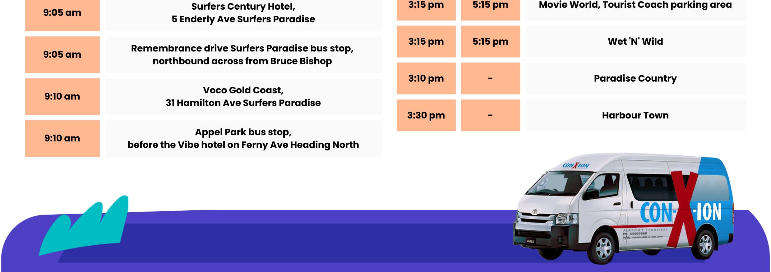 * 골드코스트 테마파크 왕복 이동 서비스를 편안하고 효율적으로 이용하세요.