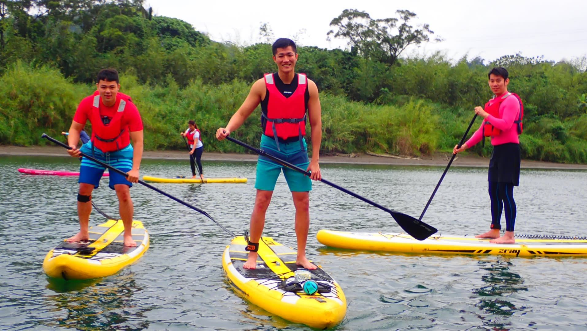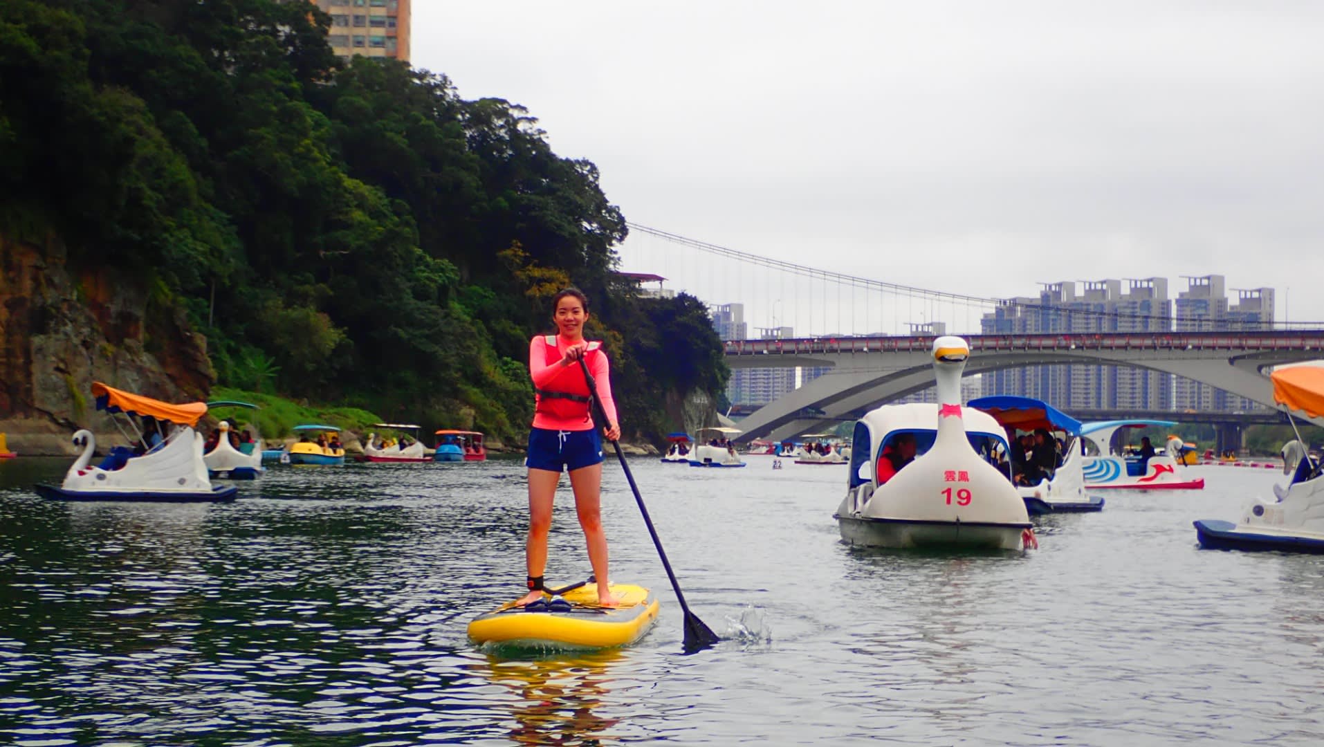 신뎬(新店)구 비탄(碧潭) 풍경구는 타이베이에서 즐거운 주말을 보내기에 좋은 곳으로, 낚시나 바비큐 등을 즐기러 오는 사람들이 많습니다. 이 지역에서 가장 인기 있는 활동 중 하나는 신뎬 강(新店河)에서 SUP(스탠드업 패들보드)를 타는 것입니다! 이 지역은 풍부한 연못, 계단식 지형, 사주가 있으며 볼거리가 많습니다. 눈앞에 보석처럼 펼쳐지는 물의 자연스러운 청록색에 감탄하게 될 것입니다. 중/영문 코치의 지도를 받으며 노를 젓는 동시에 주변의 아름다운 경치를 감상하세요. 강사의 설명을 주의 깊게 들어야 합니다! 그래야 스탠드업 패들보드에 대한 더 많은 지식과 기술을 배울 수 있습니다. 이 활동에는 사진 촬영 서비스도 포함되어 있으니, 카메라 앞에서 마음껏 미소를 지으며 당시의 즐거움을 사진으로 남겨보세요!