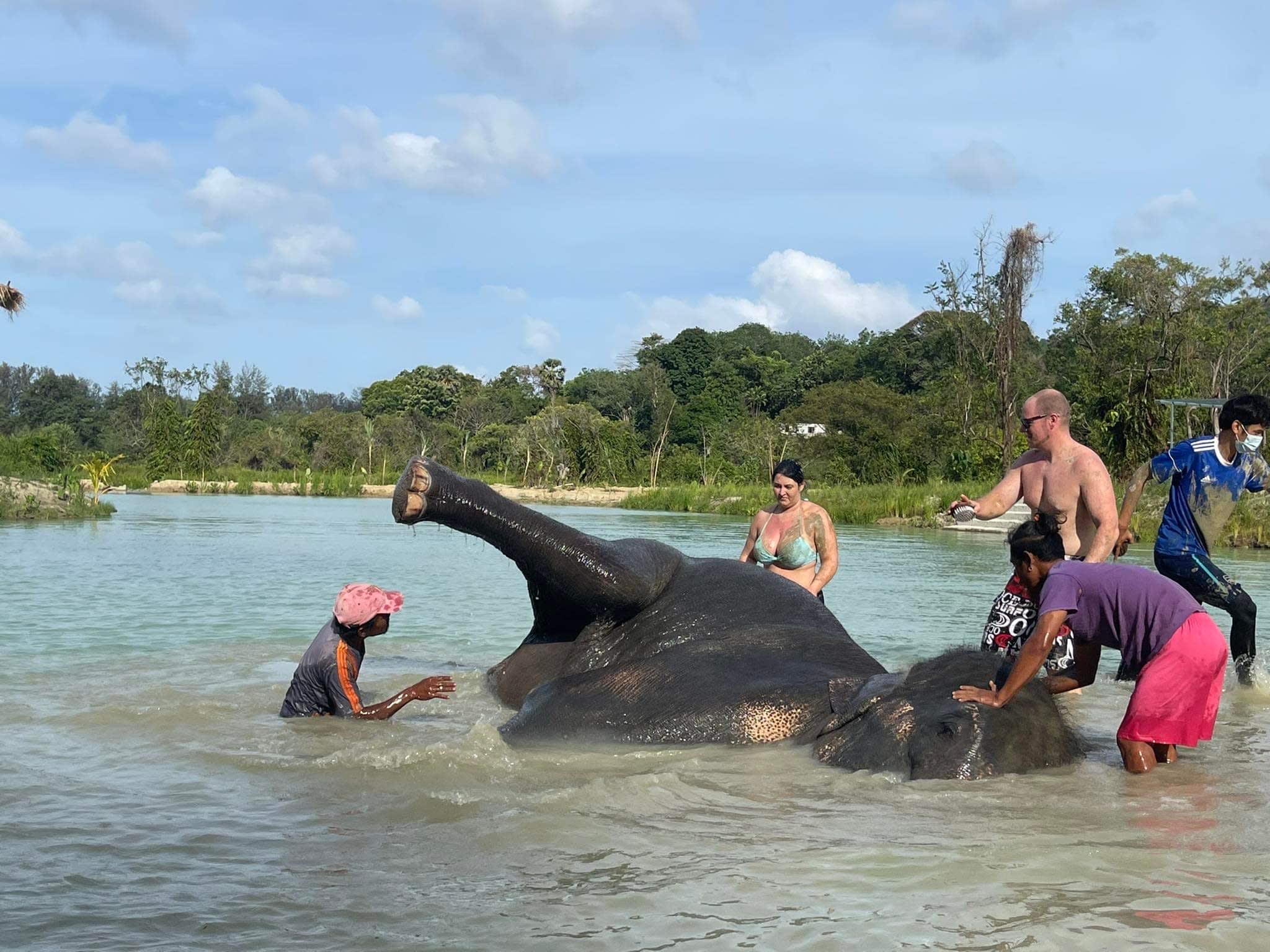 * 넓은 자연 호수에서 진흙으로 코끼리 피부를 씻겨주세요.