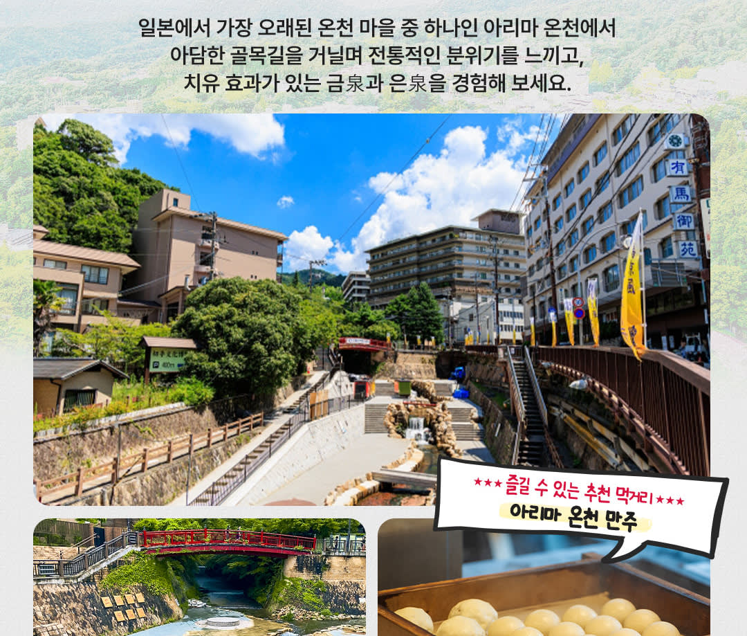 * 유서 깊은 아리마 온천에서 선택적으로 온천을 즐기며 휴식을 취하세요.