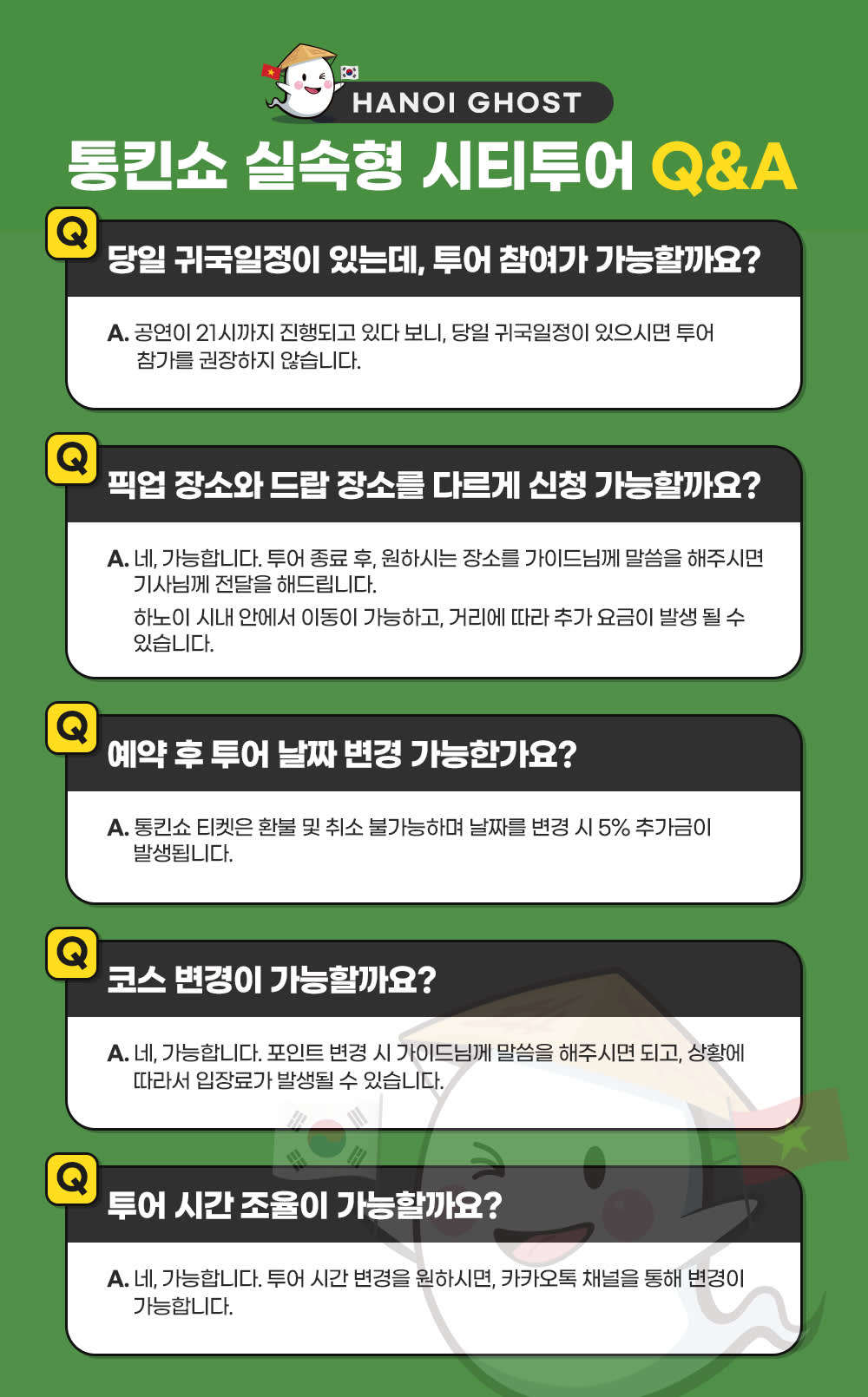 유명한 하노이 명소와 통킨쇼가 포함된 상품입니다. 호수 아래에 무대에서 진행되는 베트남 최대 규모의 수상극과 하노이에 오면 한번씩 꼭 가봐야하는 필수 명소들을 둘러보는 투어입니다.