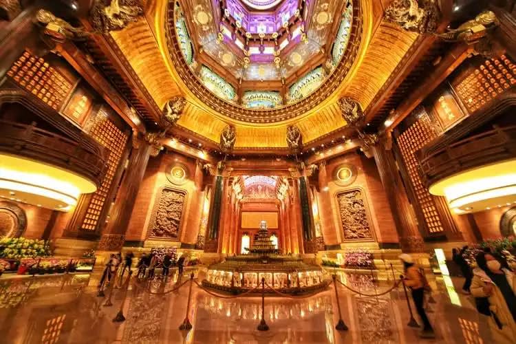 🏛️ 링산 범궁 링산 범궁은 웅장한 불교 문화 건축물로, 외관은 석굴 예술과 궁전 건축의 특징을 융합했습니다. 궁내 성단은 세계 불교 포럼이 개최되었던 장소이며, 매일 상연되는 대형 상황극 공연인 '링산 길상송'은 음향, 조명, 전자 등 현대 기술을 활용하여 석가모니가 깨달음을 얻어 부처가 되는 이야기를 연출하여 몰입감 넘치는 예술 체험을 선사합니다.