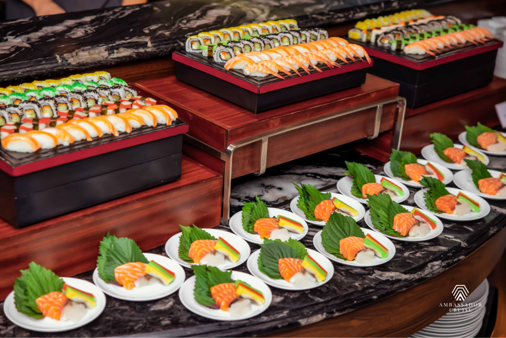 18:00: 엠베서더 5성급 크루즈 뷔페 식사 진행