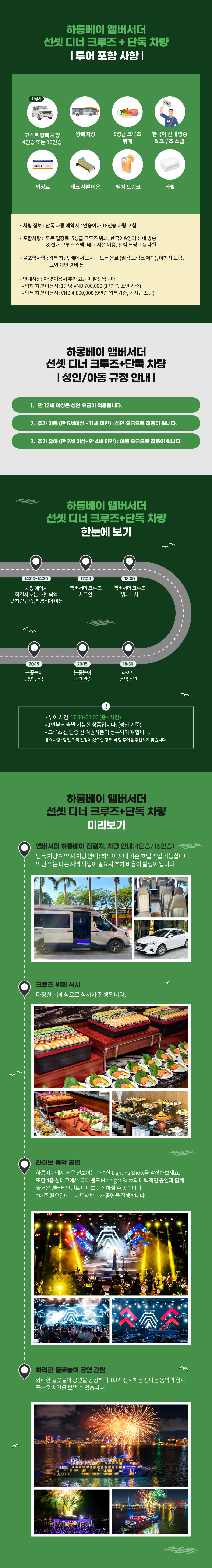 14:00 - 14:30: 차량 예약시: 집결지 또는 호텔 픽업 및 차량 탑승, 하롱베이 이동
