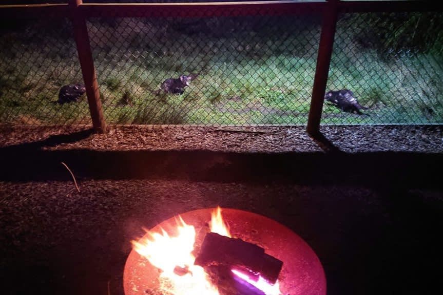 * 캠프파이어를 즐기며 타즈매니아의 달콤한 간식을 맛보며 휴식