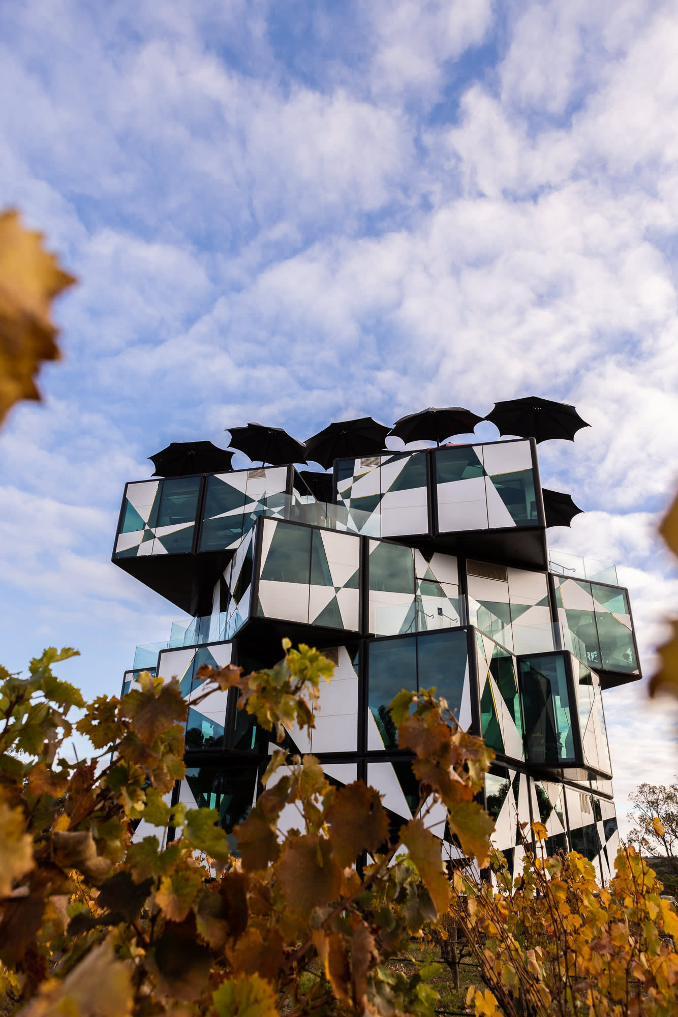 * 무르베드르 포도밭 사이에 자리한 5층 규모의 다기능 건물인 데렌버그 큐브에서 셀프 가이드 투어를 즐겨보세요.