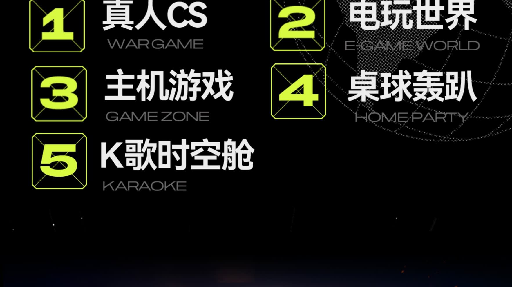 * 「실사 CS, KTV 스페이스 캡슐, 콘솔 게임, 팀 빌딩 파티, 트렌디한 놀이기구」를 융합한 엔터테인먼트 소셜 목적지를 만듭니다.
