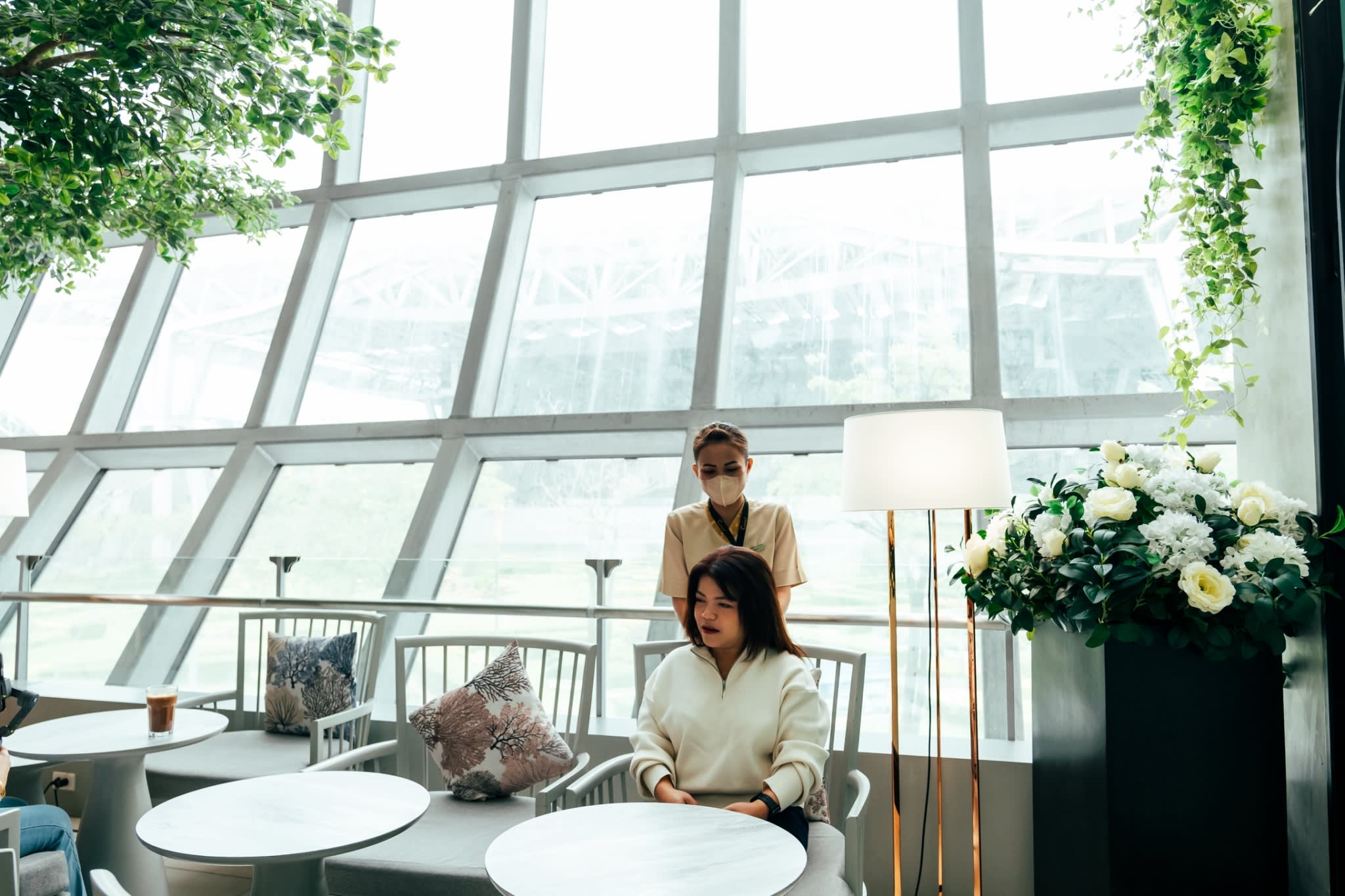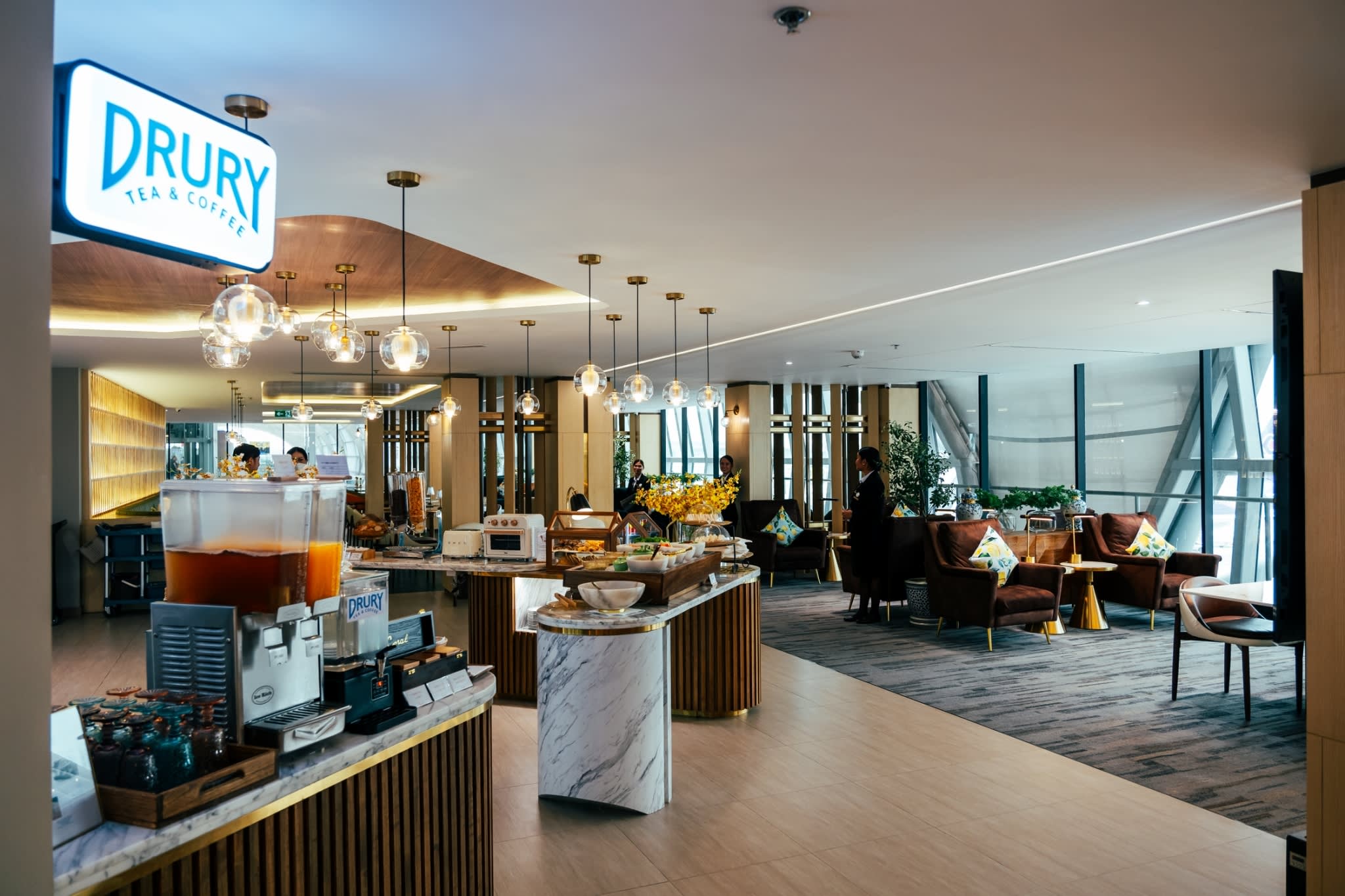 고급스러운 엄선된 고급 요리, 장인의 간식, 다양한 프리미엄 티, 커피, 다과를 즐겨보세요. 라운지는 또한 목과 어깨 마사지를 포함한 독점 서비스를 제공하여 다음 항공편을 기다리는 동안 편안하고 편안하게 지낼 수 있도록 합니다.