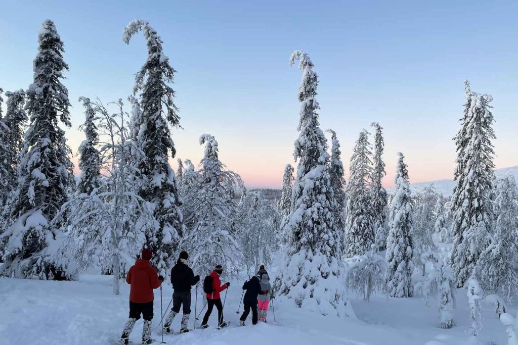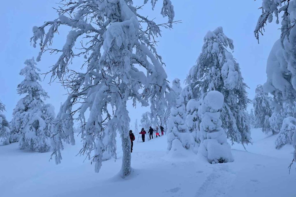 스노우슈잉 2~2.5시간, 점심시간 1시간, 레비에서 공원으로 이동하는 45분 차량 이동을 포함해 체험 전체 소요 시간은 약 5.5시간입니다. 겨울 의류가 필요한 경우, 1인당 22유로에 제공해 드립니다. 그룹 규모는 최대 13명입니다.