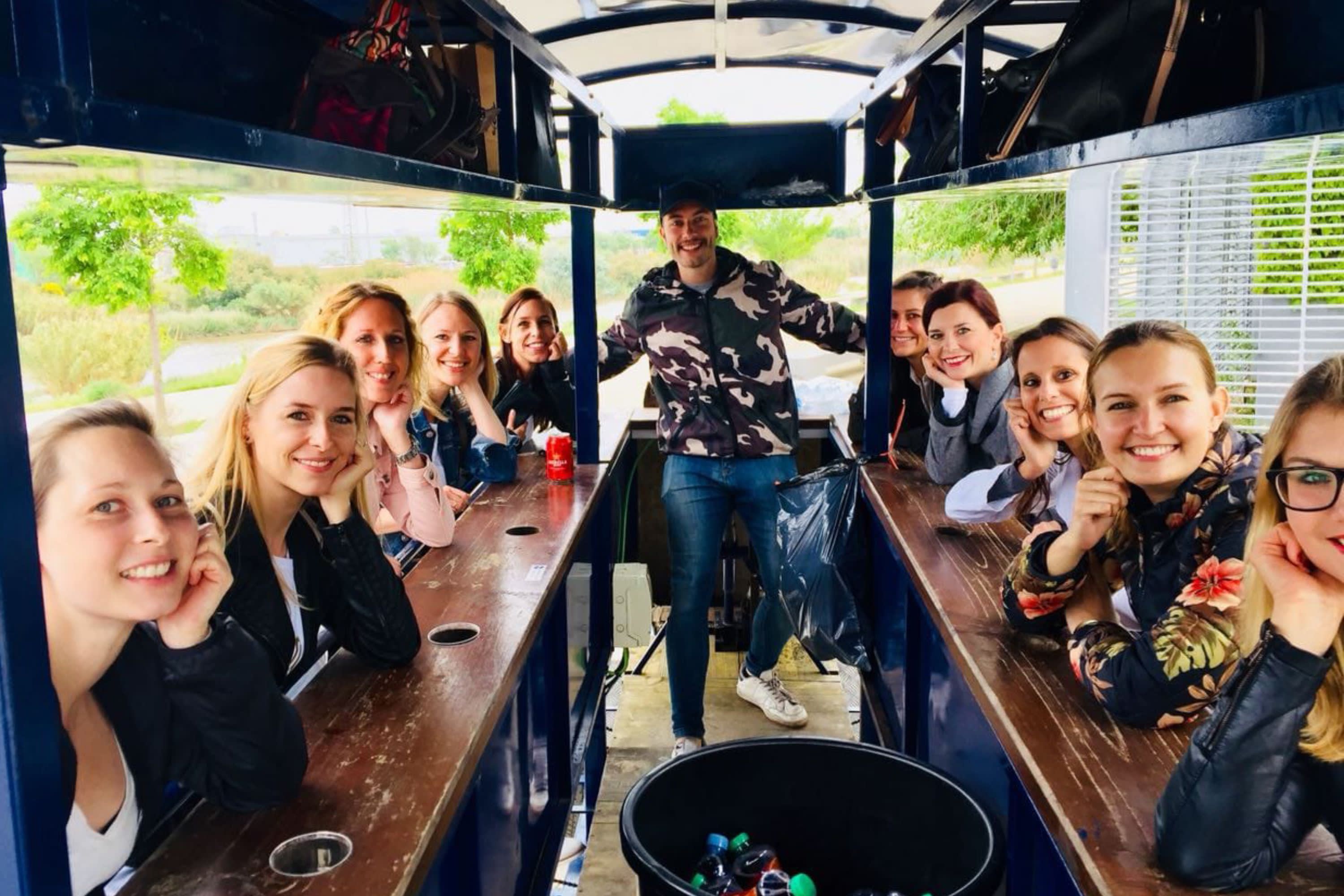 맥주 자전거를 타고 해변, 공원, 자연, 강변, 넓은 길을 따라 즐거운 시간을 보내세요. 스포츠 경기나 콘서트 같은 이벤트에 따라 경로가 변경될 수 있으며, 신나는 라이딩을 위한 최고의 장소를 보장합니다. 붐비는 시내와 주요 관광지를 피해 경치 좋고 안전한 장소에서 친구들과 맥주나 상그리아를 즐겨보세요. 안전을 최우선으로 생각하여 녹음이 우거진 평온한 지역에서 휴식과 즐거움을 만끽할 수 있도록 투어를 진행합니다. 웃음과 활기 넘치는 분위기, 멋진 사진을 남길 수 있는 기회가 가득한 특별한 추억을 만들어보세요. 신나는 맥주 자전거 모험은 즐거움과 잊지 못할 순간으로 가득한 최고의 경험이 될 것입니다.