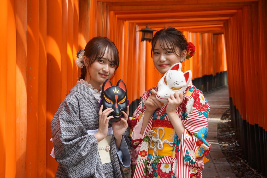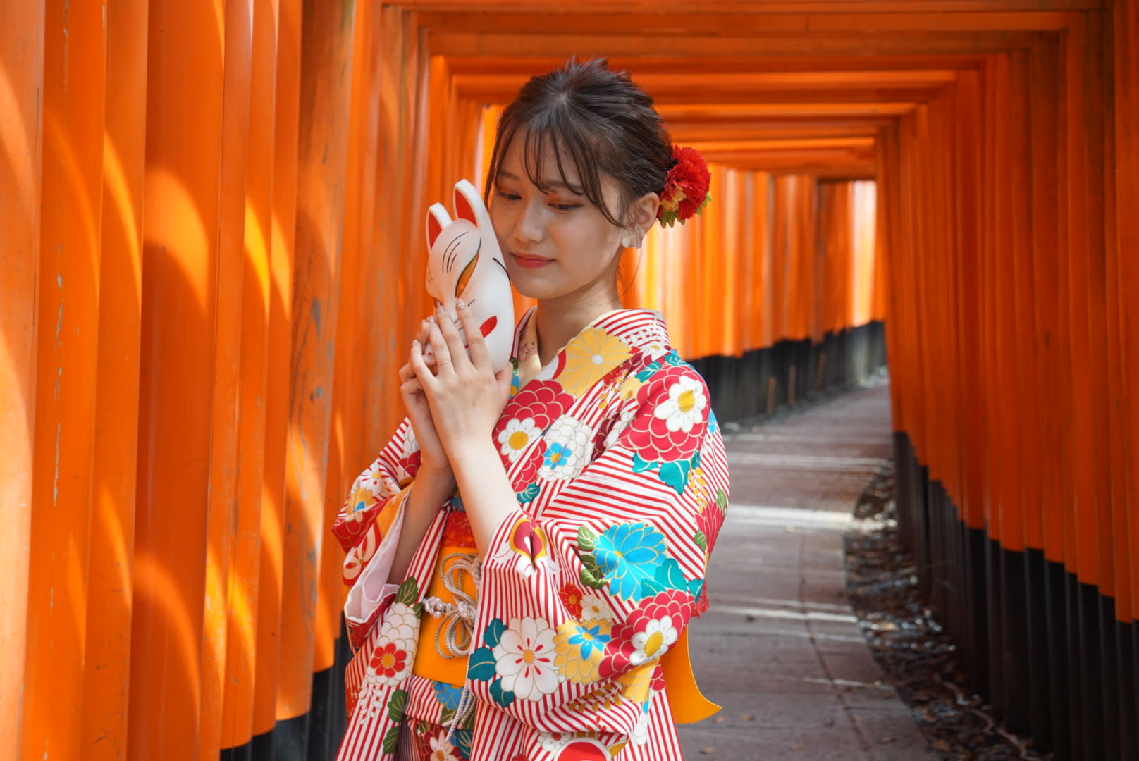 후시미이나리점 안내 교토를 대표하는 인기 관광지 「후시미이나리 신사」까지 도보 5분. 기모노 차림으로 주색으로 물드는 센본 도리이를 걸으면 마치 영화의 한 장면과 같은 특별한 사진을 찍을 수 있습니다. 프로 옷 입히기사와 미용사가 마무리하므로 장시간의 산책도 안심. 다채로운 기모노 중에서 마음에 드는 것을 골라 교토만의 하루를 즐겨 주세요.