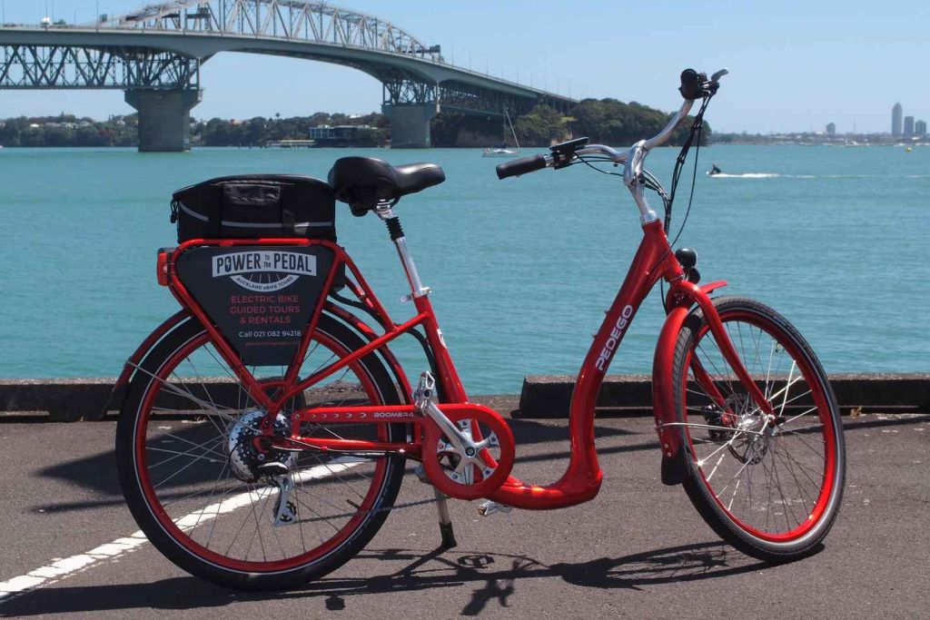 크루즈 선박 터미널과 많은 호텔에서 도보로 쉽게 이동할 수 있는 오클랜드 시내 중심에 위치한 프린스스 워프의 기지에서 만나보세요. 그곳에서 헬멧과 자전거 전용 헤드셋을 포함한 세련된 전기 바이크와 라이딩 장비를 갖추게 되며, 라이딩을 즐기면서 가이드의 안내를 안전하게 들을 수 있습니다. 전기 바이크에 대한 짧은 오리엔테이션을 받은 후, 투어 시작 전에 익숙해질 수 있도록 가까운 곳에서 연습 라이딩을 하게 됩니다.