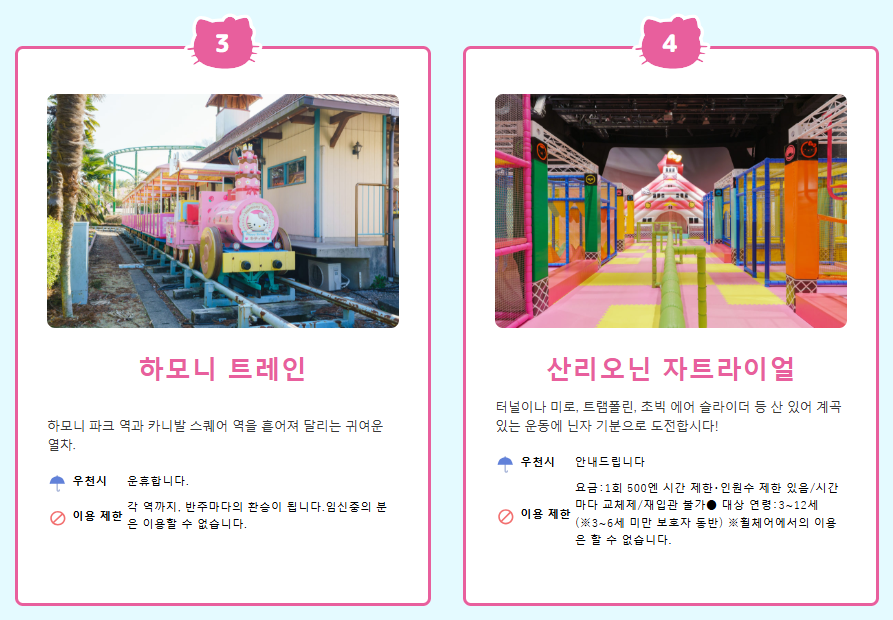 • 👌 특급열차 소닉을 타고 산리오 하모니랜드를 편안하게 방문해 보세요.