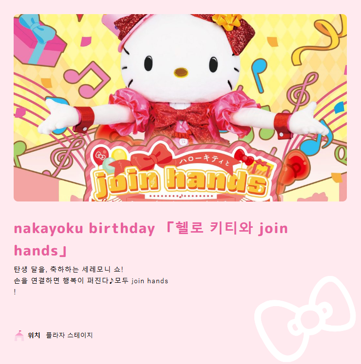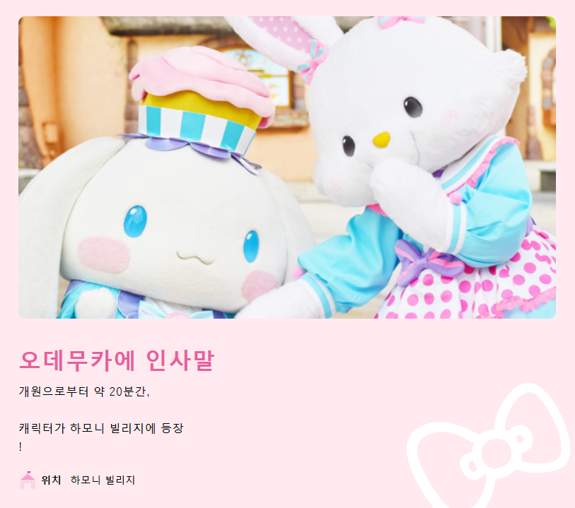 * 운영시간 및 휴무일은 별도 공지 없이 변동될 수 있으니, 구매 및 방문 전 공식사이트 확인 후 구매 및 방문 해주세요. https://www.harmonyland.jp/event#calendar