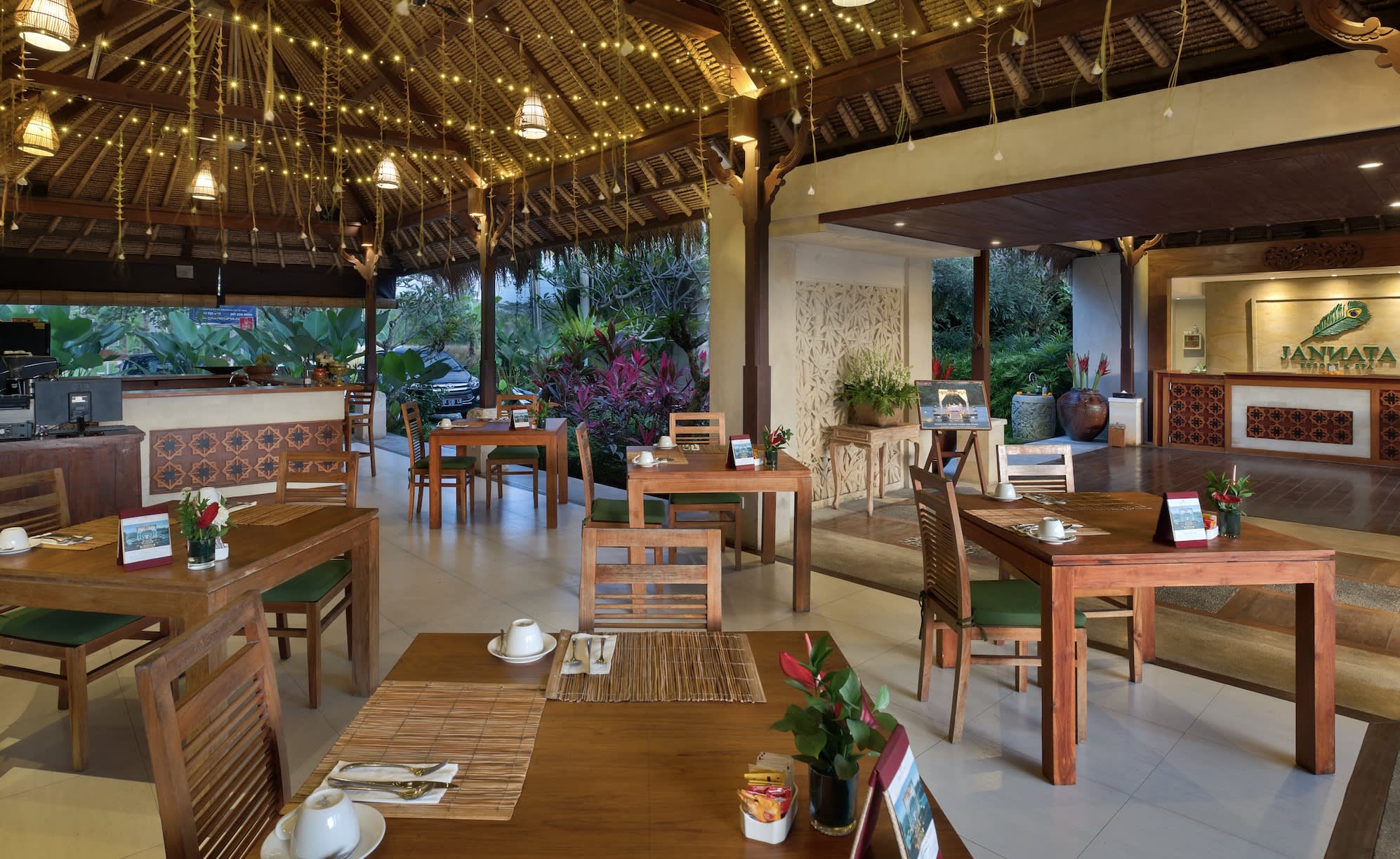 * 발리 열대 우림과 워스 강을 내려다보는 놀라운 위치에 있는 아마테라스 레스토랑 * 레스토랑은 멀리 무성한 계곡의 푸른 열대 전망을 감상할 수 있는 메인 수영장 위에 있습니다. * 셰프는 전통 요리와 현대적인 요리 기술을 창의적으로 결합한 세계 각국의 특선 요리를 제공합니다. * 신선하고 유기농 야채, 과일, 향신료는 현지 생산자로부터 공급받습니다!