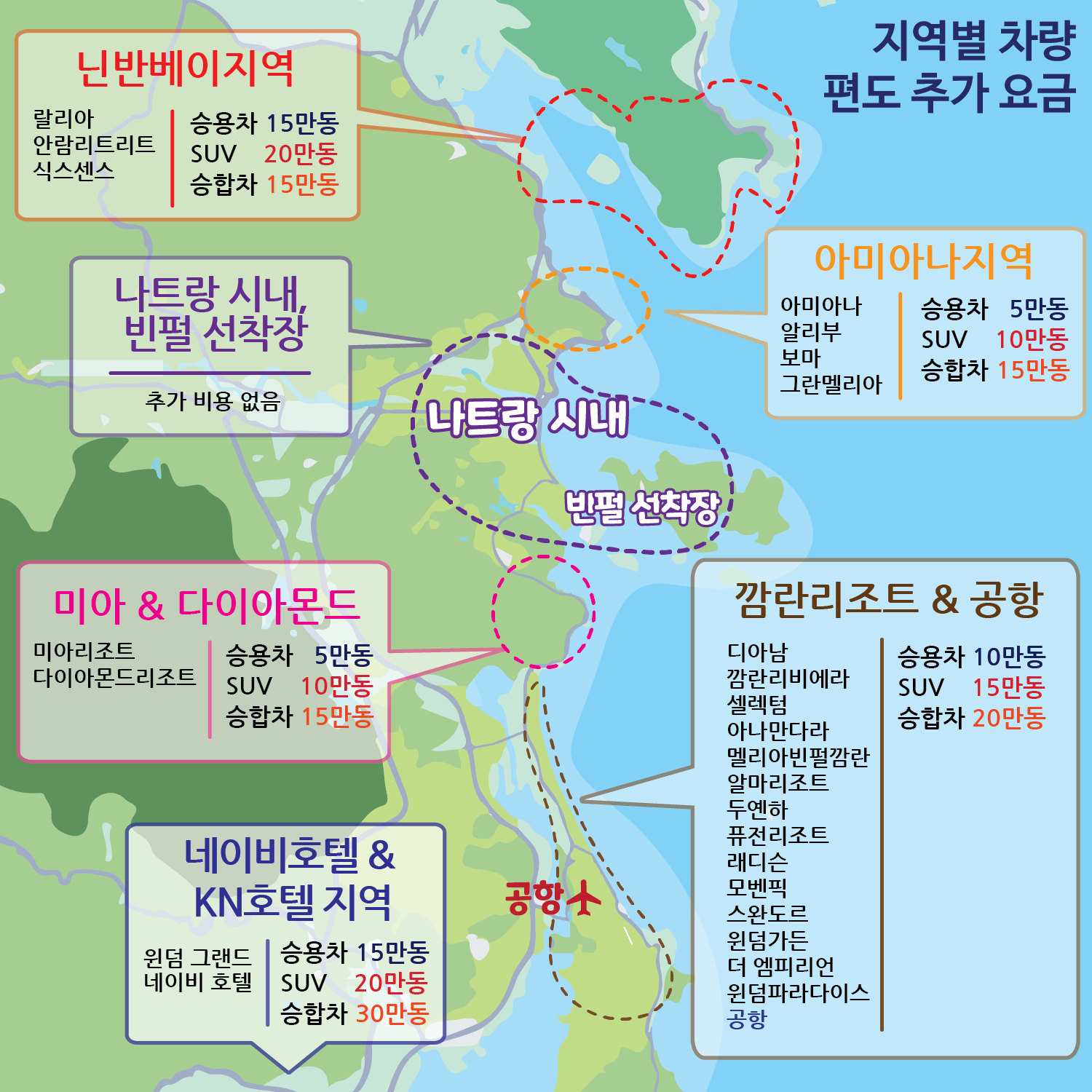 - 나트랑지역 시외지역 차량추가요금 (1대당/편도)