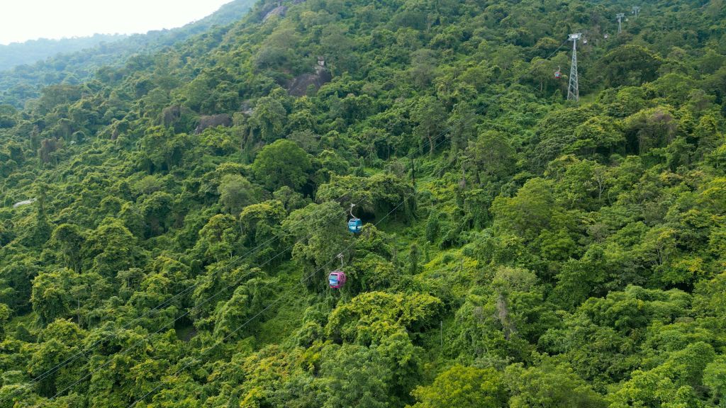 따꾸산 정상까지 쉽게 이동하려면 산기슭에 있는 TTC World Ta Cu에서 왕복 케이블카를 타고 가는 길에 따꾸산의 멋진 경치를 감상할 수 있습니다.