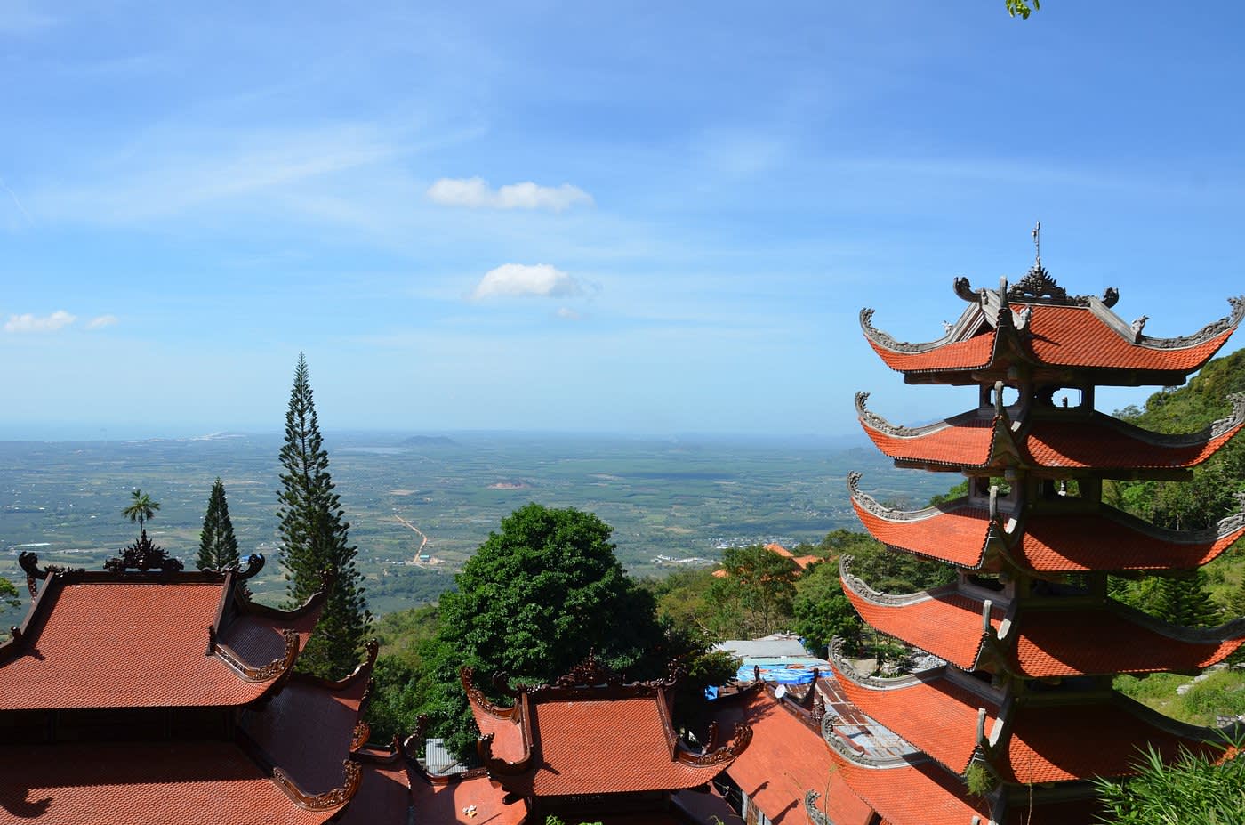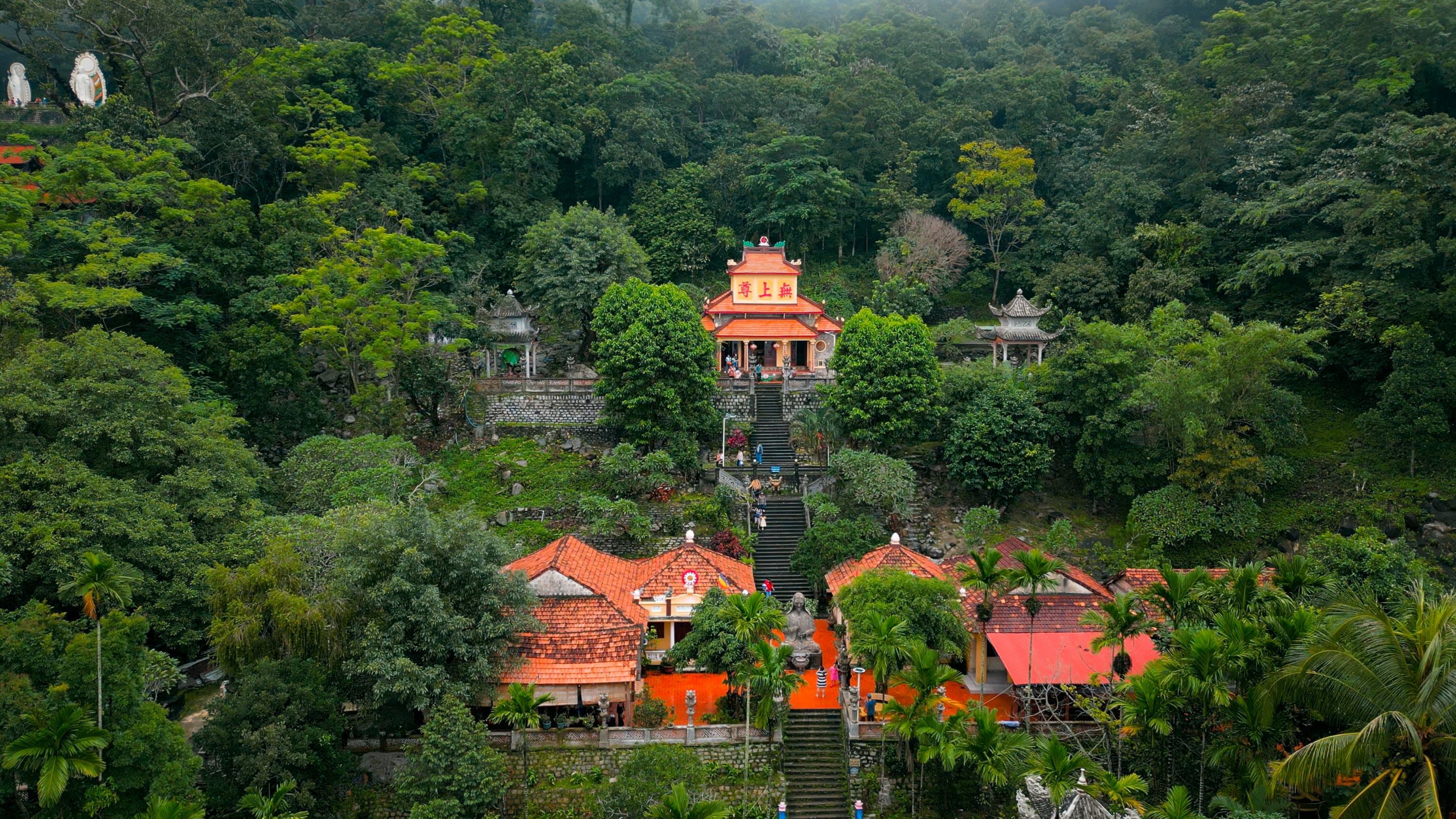 린선쯔엉토 사원과 옹도안 사원이라는 두 개의 유명한 사찰이 해발 약 400m 높이에 자리 잡고 있습니다. 린선쯔엉토 사원은 따꾸산 사원 또는 "위쪽" 사원이라고도 하며, 이는 롱도안 사원인 "아래쪽" 사원과 구별하기 위한 것입니다.