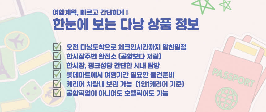 • 오전 도착하여 체크인시간까지 알차게 다낭을 시작해 보세요~!