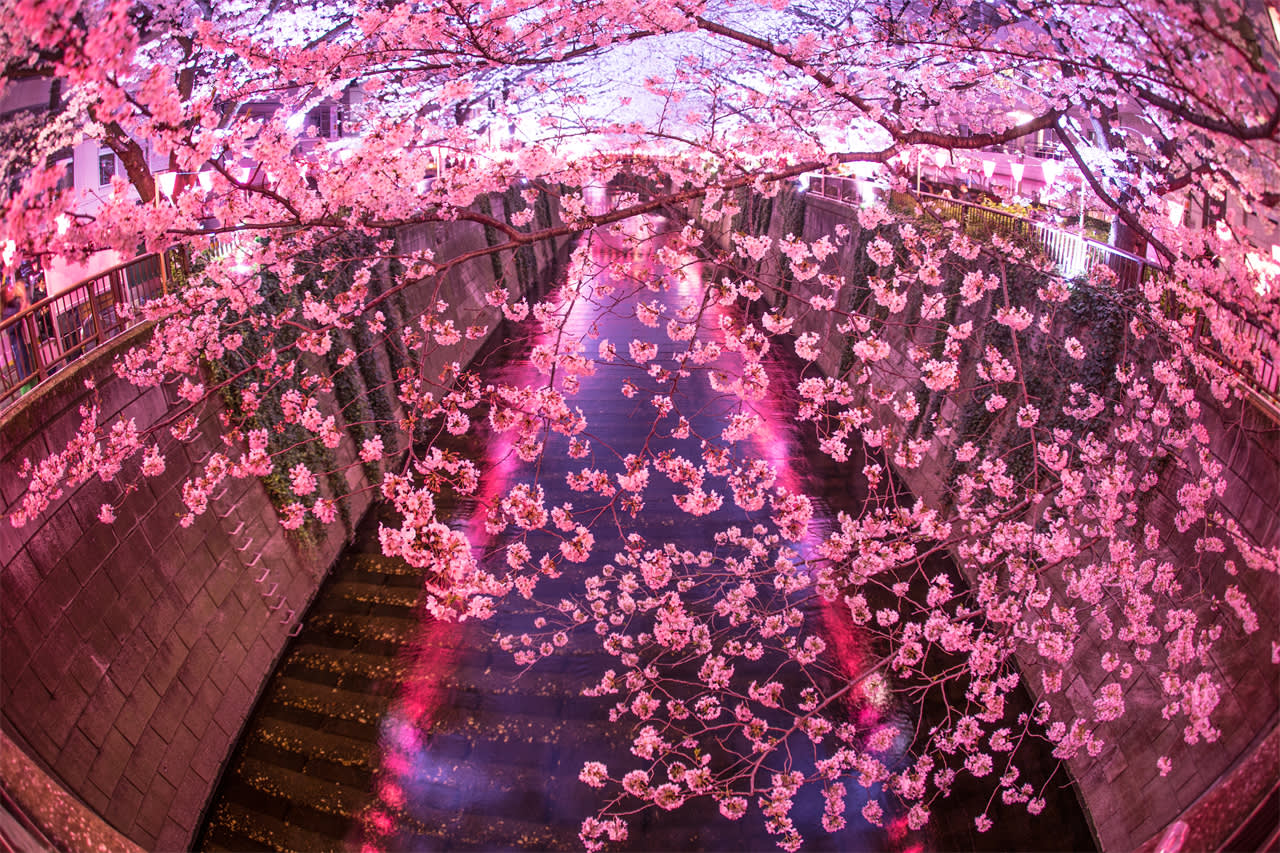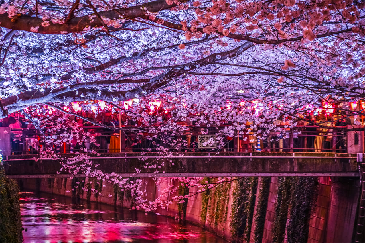 * 메구로 강변의 밤 벚꽃은 매우 매혹적이며, 따뜻한 조명이 벚꽃 나무를 비춰 낭만적인 밤에 몽환적인 벚꽃 그림자를 촬영하기에 좋습니다.