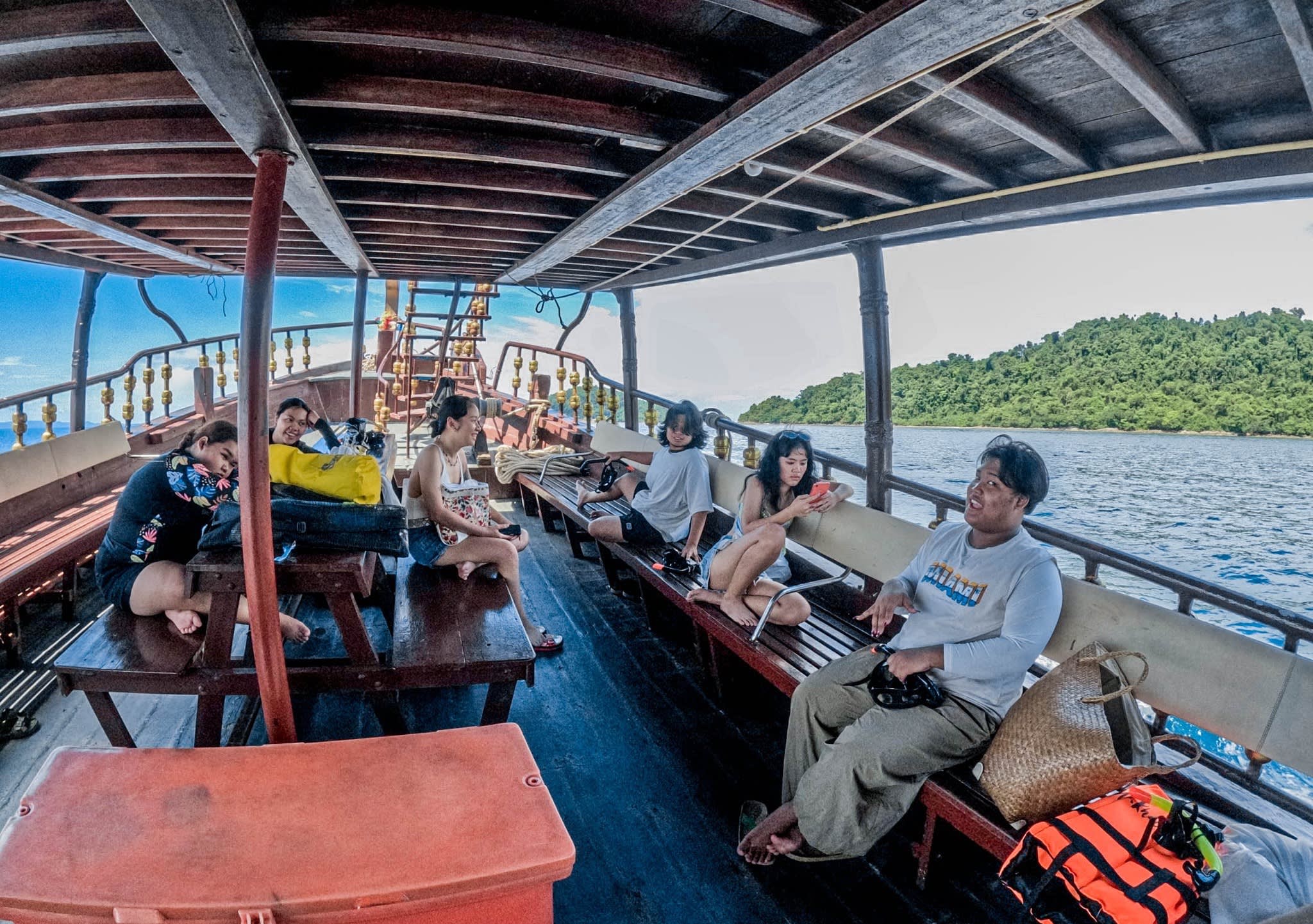 커다란 보트를 타고 코창 주변의 아름다운 섬들을 탐험하며 편안한 여행을 즐겨보세요.