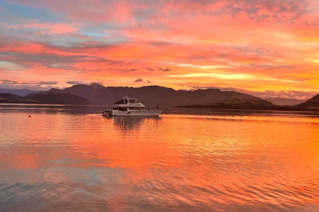 와나카 호수로 이동하며 멋진 산악 풍경을 감상할 수 있습니다. 선장, 승무원 또는 동료 여행자와 대화를 나누며 뉴질랜드의 이 놀라운 지역에 대해 자세히 알아보세요.