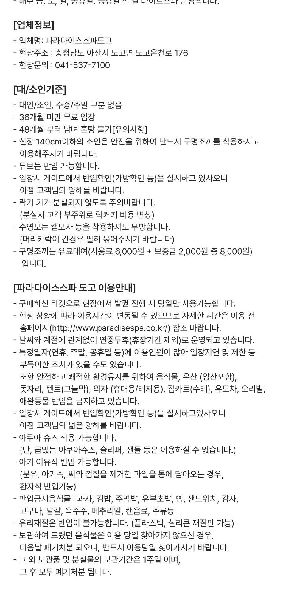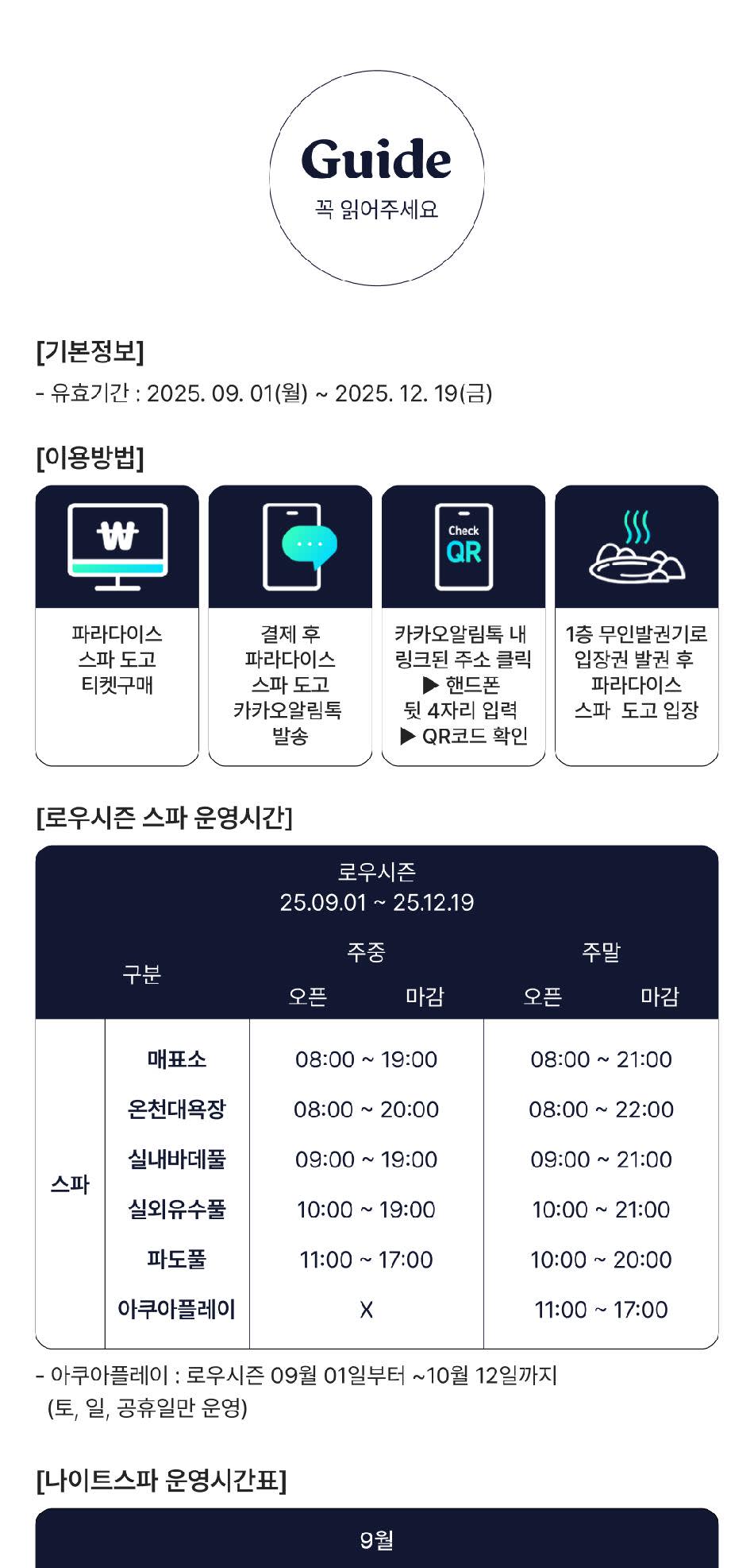 - 이용 방법 : QR/바코드 확인 후 입장- 유효기간 : 2025.09.01 ~ 2025.12.19- 당일이용 가능여부 : 당일 이용 가능