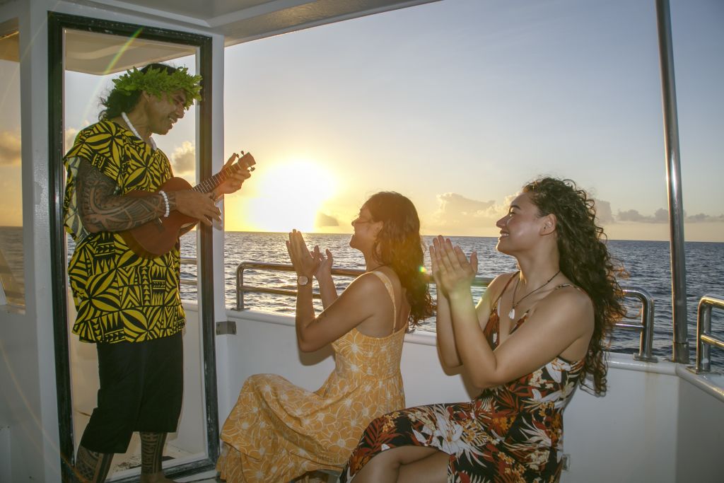 피쉬아이 해중 전망대와 선셋크루즈 콤보 상품입니다. 뮤지션 가이드가 동행하여 노래를 들려드리고 시원한 음료 (또는 맥주)과 함께 선셋을 감상할 수 있습니다. 운이 좋다면, 스피너 돌고래와 Good Luck Sign인 쌍무지개도 관찰할 수 있습니다.