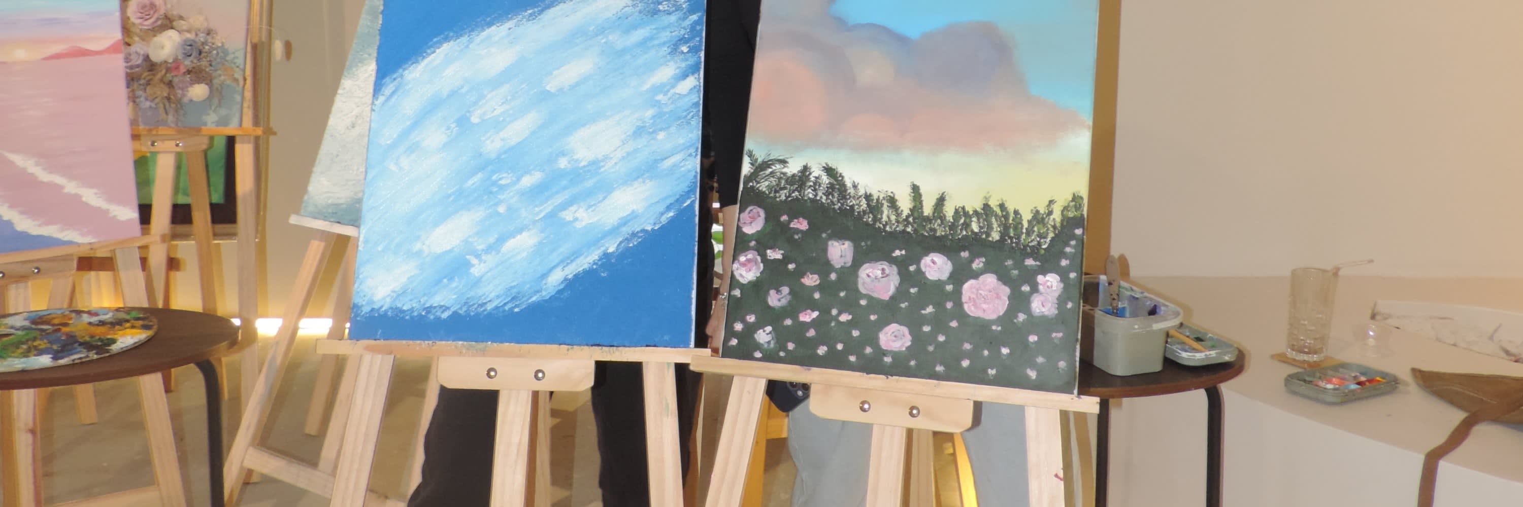 슬로우 데이 카페에서 하루를 보내세요! 카페에 들어서면 다양한 음료를 먼저 고른 후 자리를 안내받게 됩니다. 자리에는 캔버스와 그림 도구가 준비되어 있습니다. 친절한 직원이 앞치마, 붓, 이젤, 아크릴 물감 등 그림을 시작하는 데 필요한 모든 것을 제공해 드립니다!