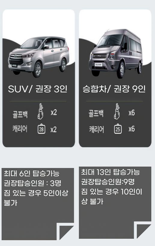 1. 단독 차량 이용 (선택하신 옵션 만큼 이용 가능)