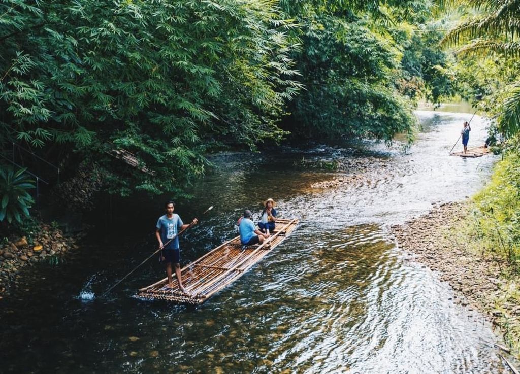 대나무 땟목으로 계곡물을 따라 유유히 내려오며, 자연으로 인해 힐링을 할 수 있는 매력적인 투어입니다.