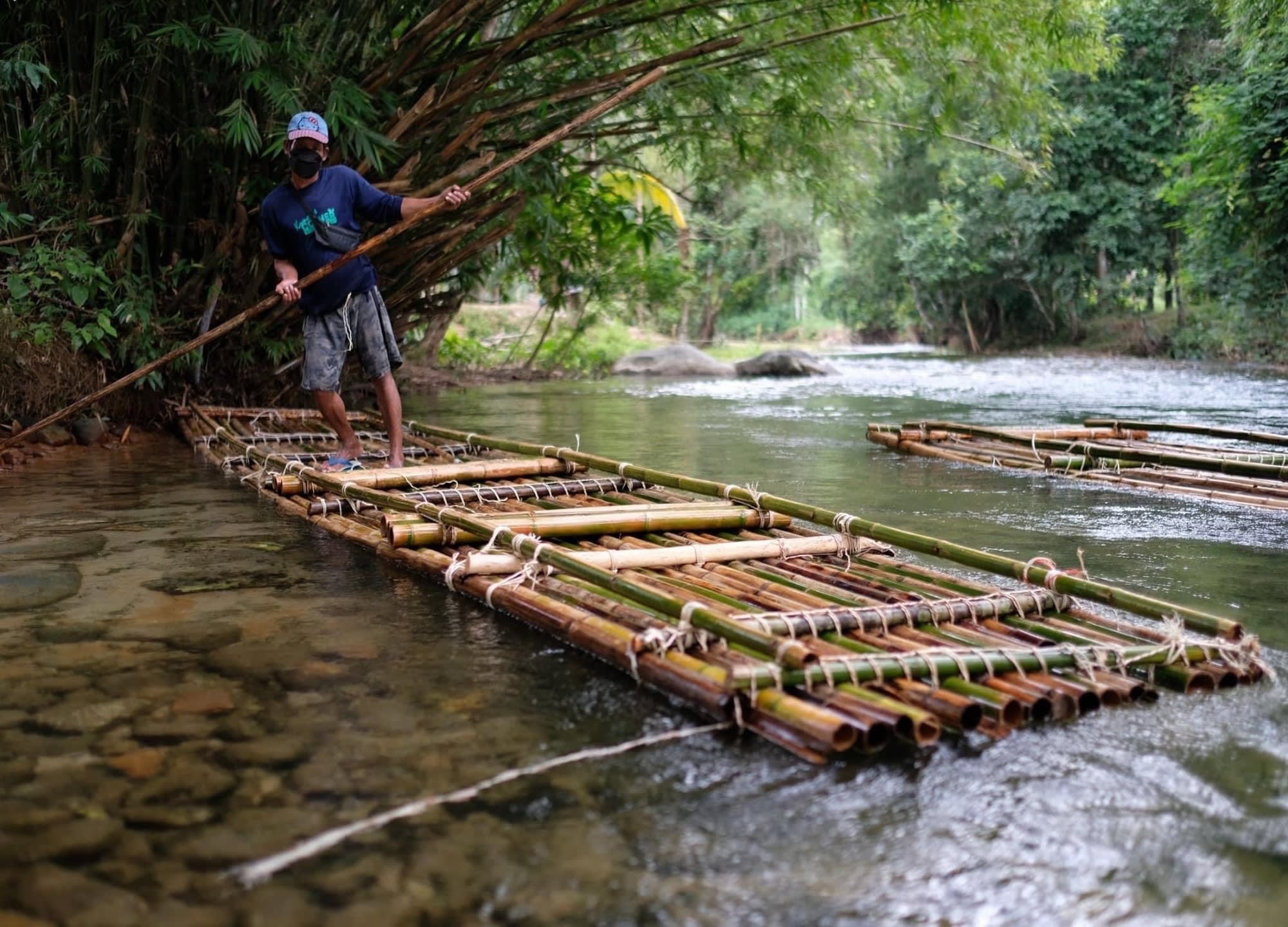 뱀부(대나무)를 엮어 만든 전통 뗏목을 타고 급류를 래프팅 하는 체험입니다.
