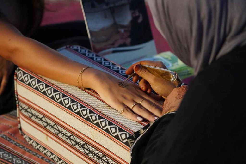 낙타를 타고 모래를 가로질러 '사막의 배'를 직접 체험하거나 모래 언덕을 내려가는 샌드보드를 타며 아드레날린이 솟구치는 짜릿한 경험을 해보세요. 손이나 발에 (제거 가능한) 헤나 문신을 새겨보세요.