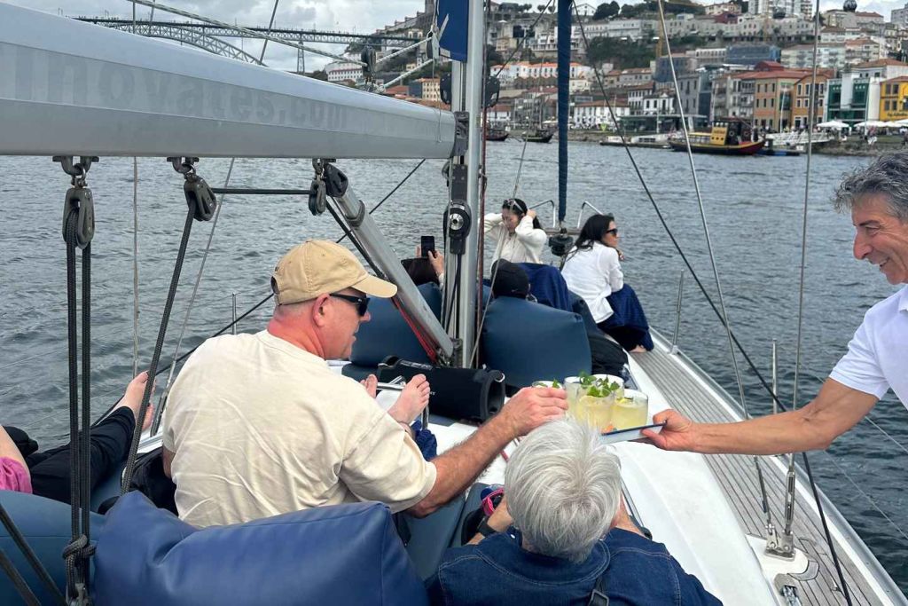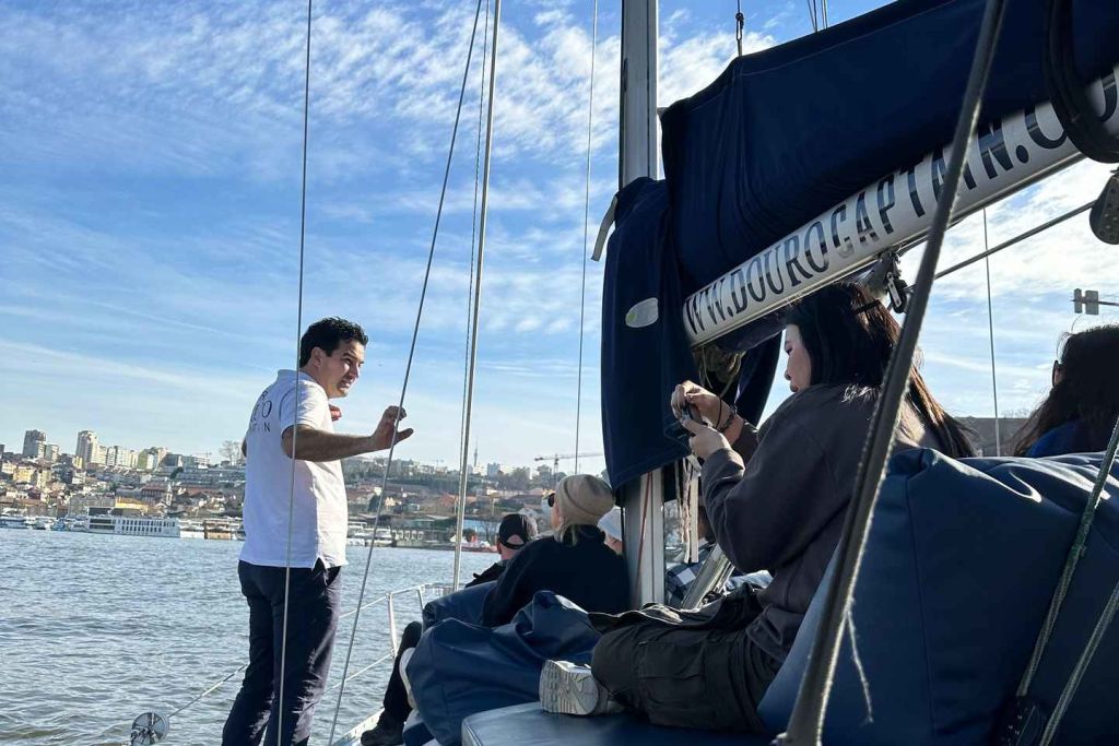 한편, 항로를 바꿔 바다로 향하여 두우루 하구의 보호 구역과 야자수가 우거진 아름다운 포르투의 옛 입구를 지나세요. 항해할 수 있는 조건이 될 때마다 바다에 도착하면 파도를 만지고 바다만이 느낄 수 있는 마법 같은 광활함을 경험하세요. 운이 좋으면 돌고래가 여러분을 반겨줄지도 모릅니다. 이 모든 것은 참가자들의 웰빙에 끊임없이 관심을 기울이고 집중하는 승무원들과 함께합니다.