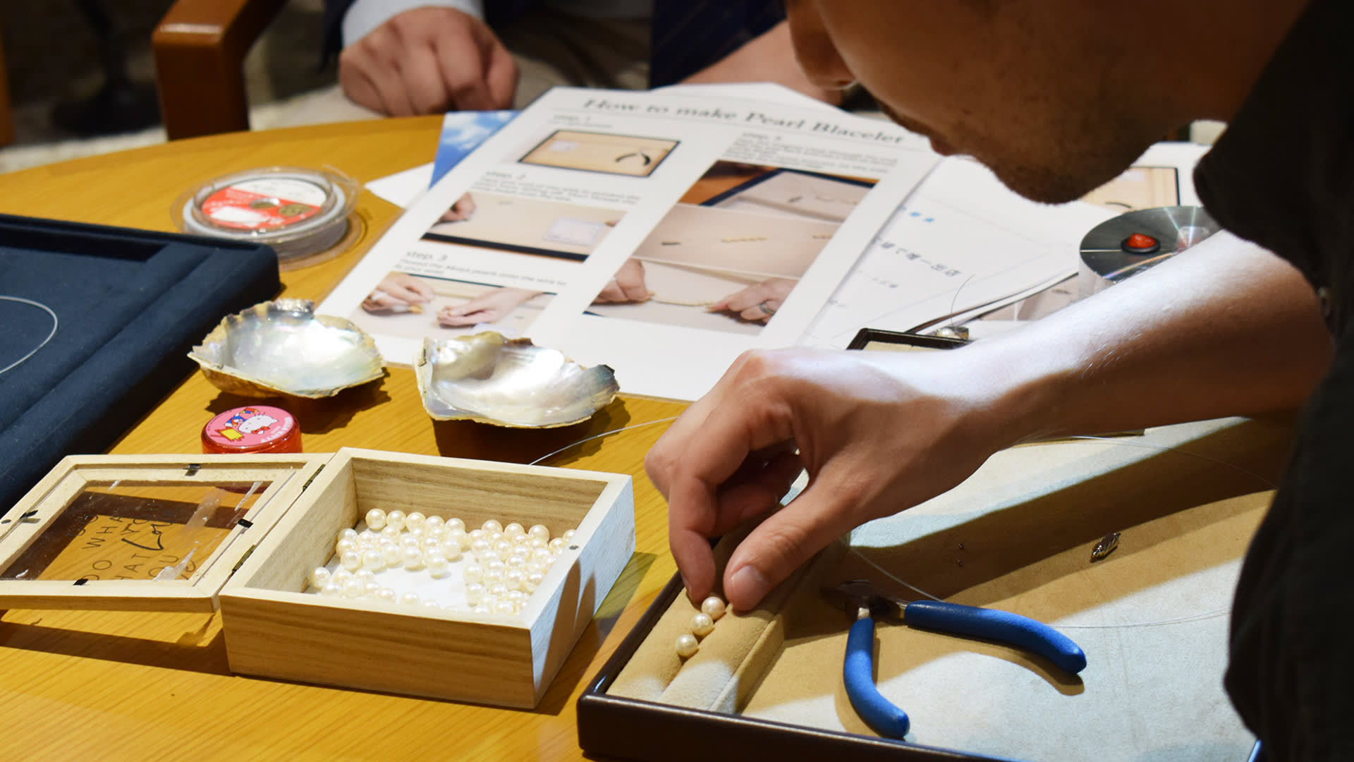 일본이 자랑하는 보석 "아코야 진주" 긴 세월에 걸쳐 만들어진 일본의 아코야 진주는 투명감 있는 품위 있는 광택을 지니고 피부에 부드럽게 어울려 전 세계 사람들을 매료시킵니다. 그런 아코야 진주를 사용하여 직접 오리지널 팔찌를 만들어 봅니다. 역사 있는 교토 땅에서 일본 문화를 접할 수 있는 절호의 기회입니다.