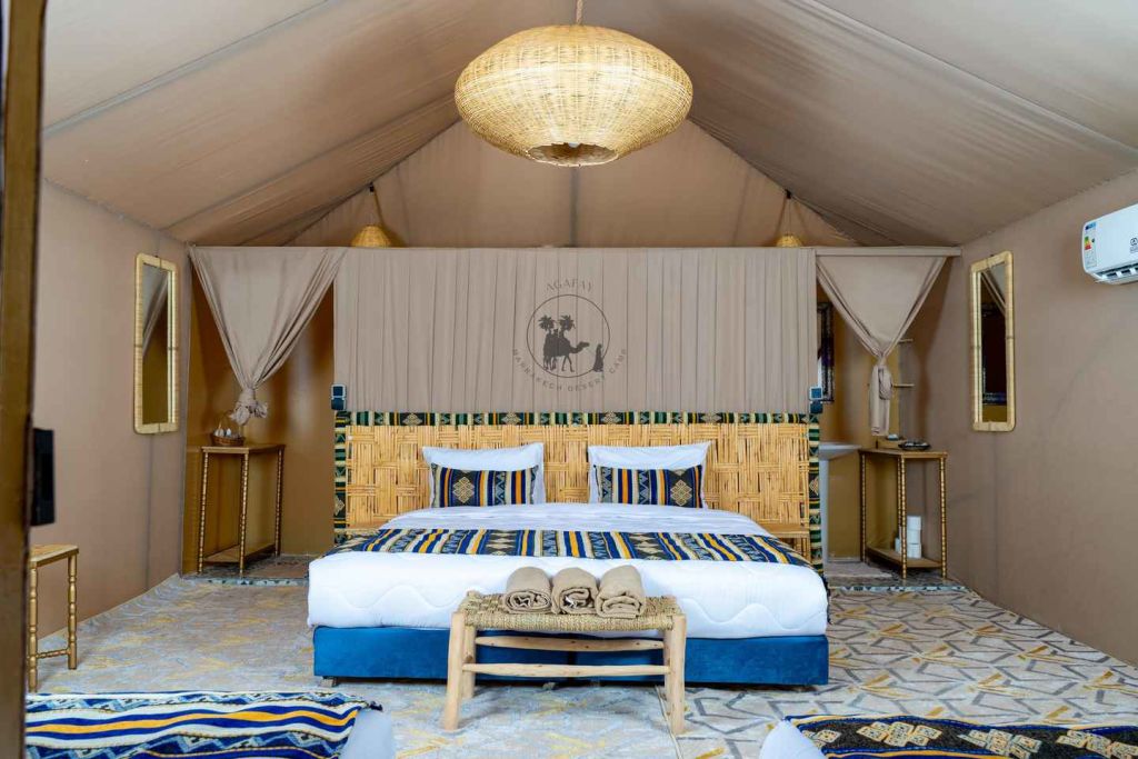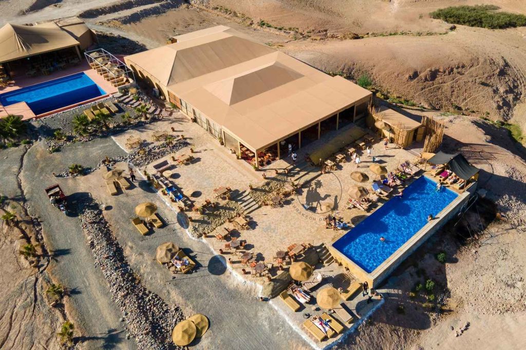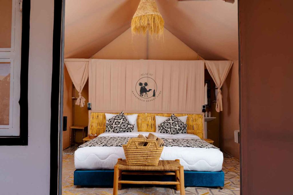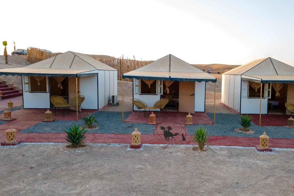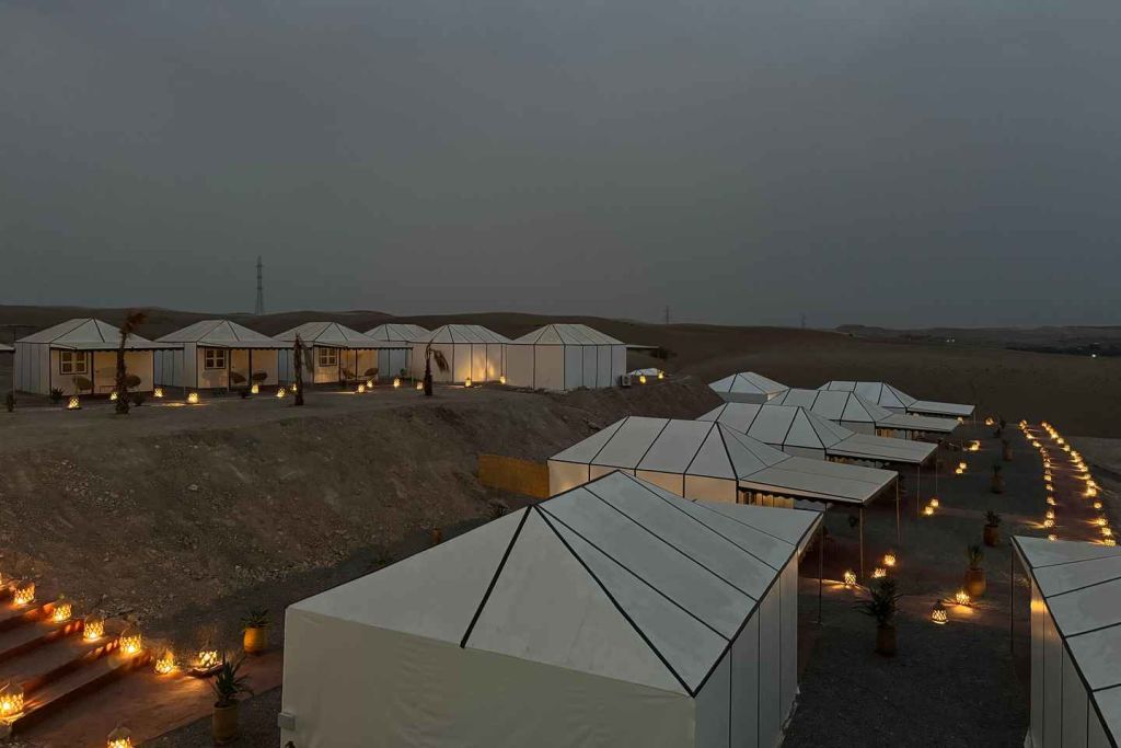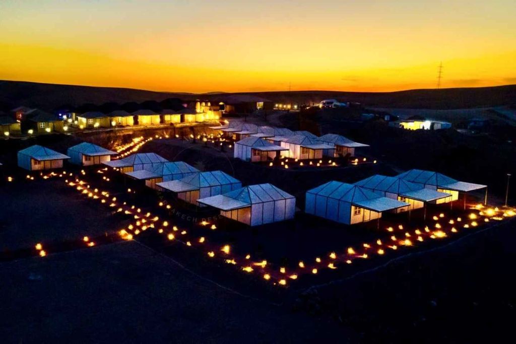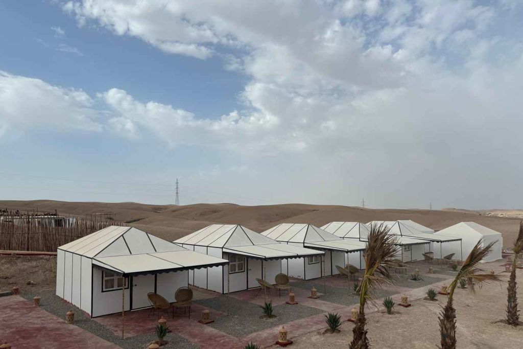 늦은 오후에 마라케시의 지정된 미팅 포인트에서 픽업으로 시작하여 미니 버스를 타고 아가파이 사막으로 향하는 경치 좋은 여행을 시작합니다. 1시간의 여행 후, 아가파이 사막의 건조한 풍경에 들어간 후, 매우 특별한 밤을 보낼 캠프에 도착합니다.