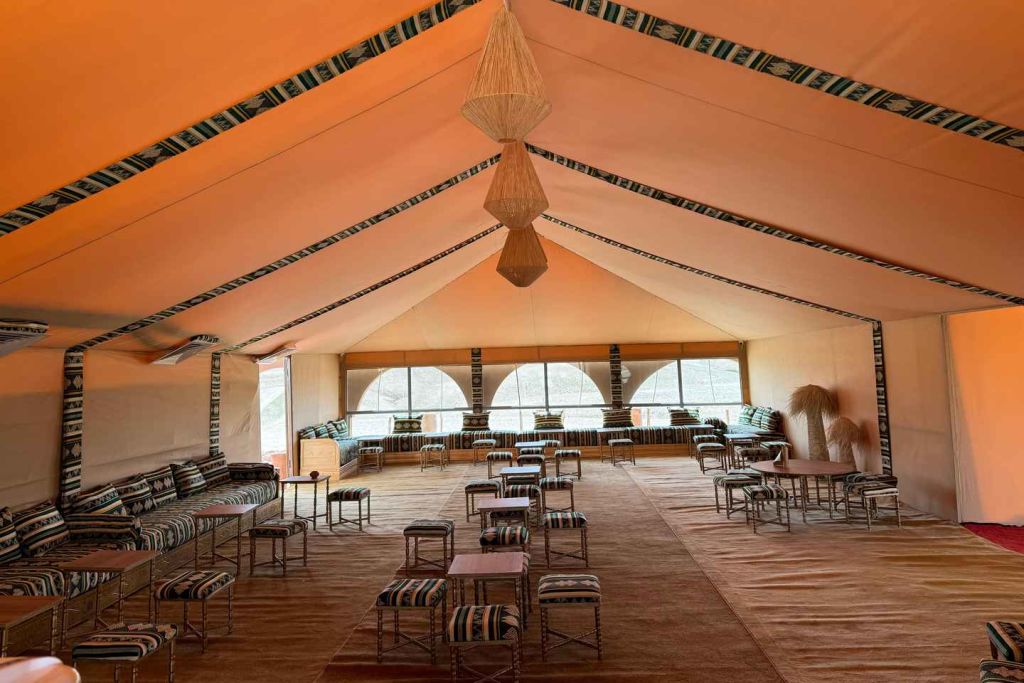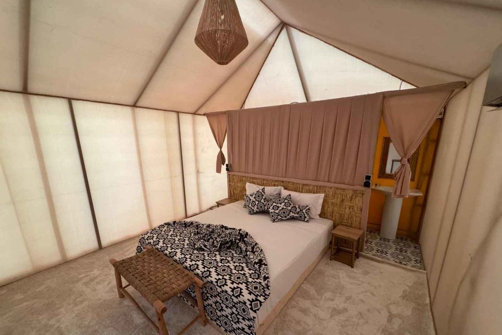 그 후 편안한 텐트에 안착해 하늘의 별빛을 감상하며, 사막의 평화로운 분위기 속에서 잠에 빠져들게 됩니다.