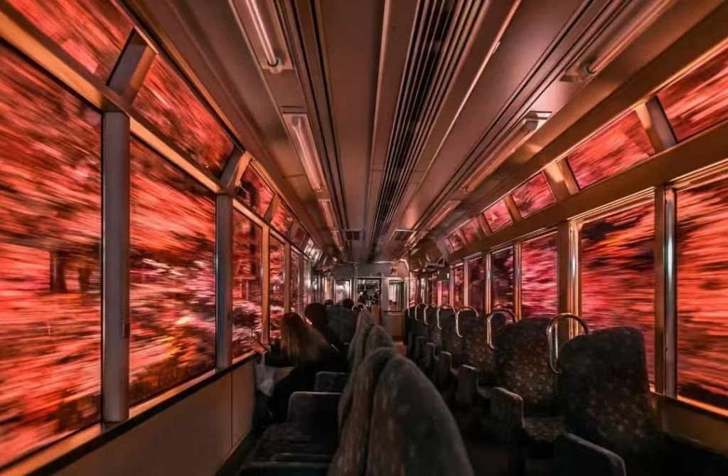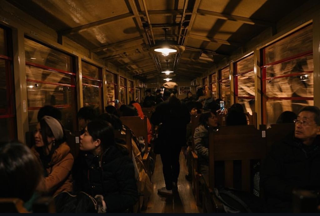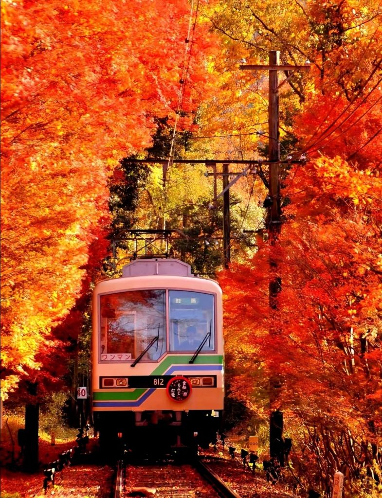 아라시야마 관광철도의 단풍 구경 야간 한정 열차가 포함되어 있습니다. (열차 시간표 및 운행 시간: 사가역 → 가메오카역, 사가노 81번 노선, 17:10~17:38)