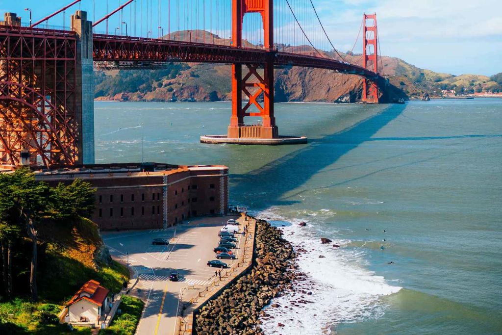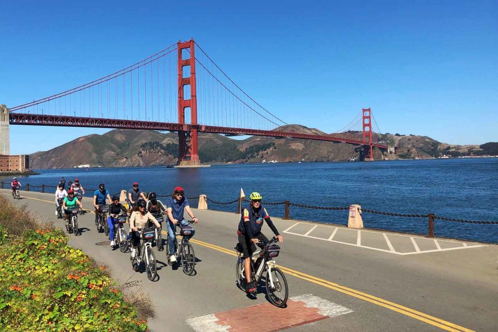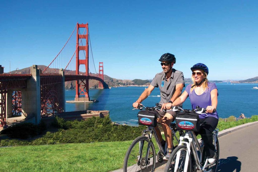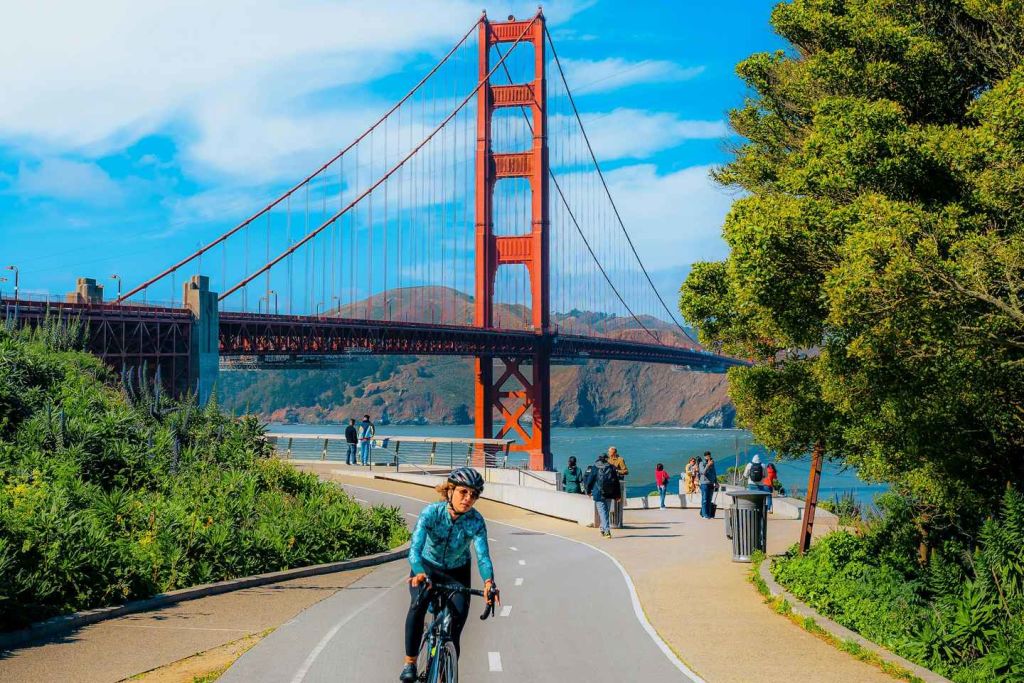 샌프란시스코 만을 따라 자전거를 타고 세계적으로 유명한 금문교를 건너보세요.