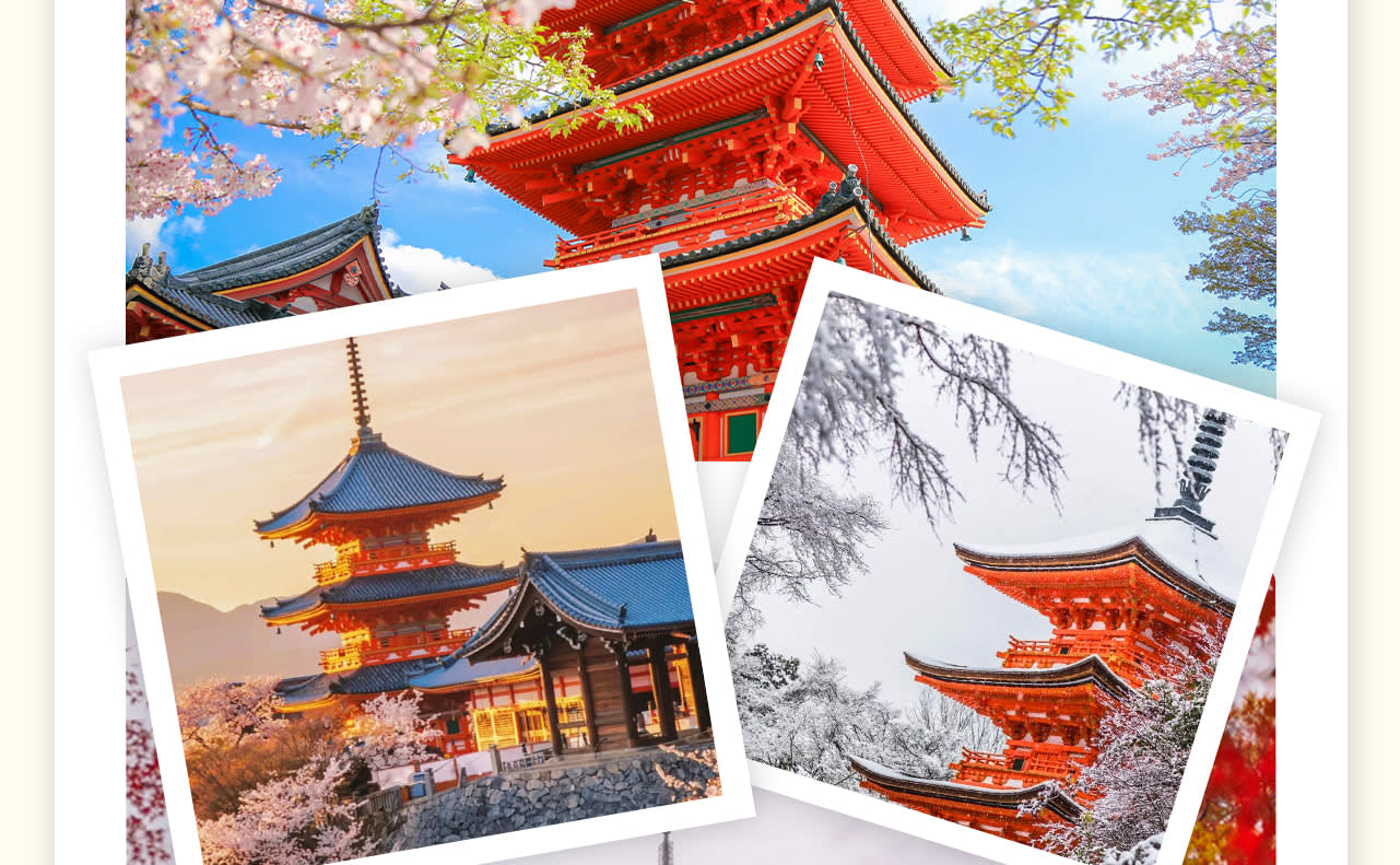 * 두 번째 코스: 🛕청수사 구역. 가을의 청수사는 온 산에 붉게 물든 단풍🍁이 아름답습니다. 추천 여행 코스: 청수사-니넨자카, 산넨자카-이시베이코지-기온, 하나미코지-야사카 신사