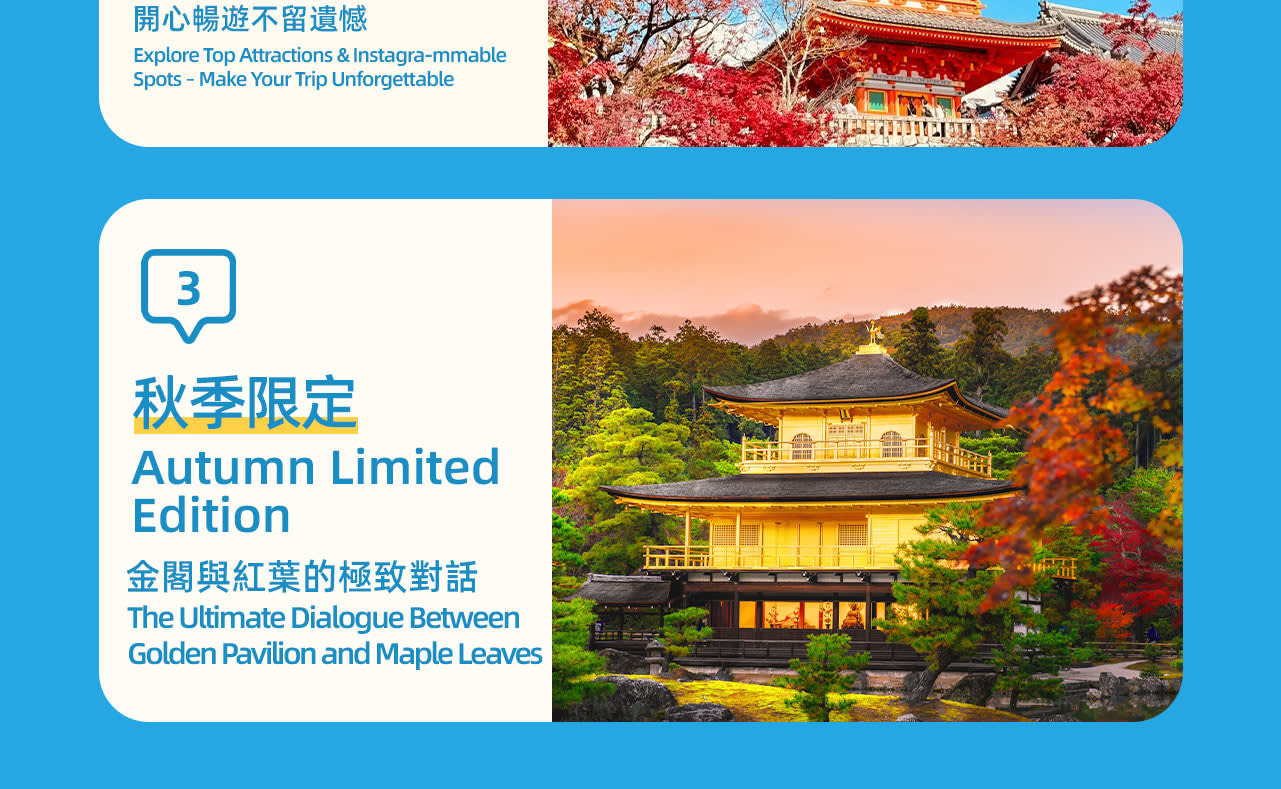 * 🛕금각사 단풍 시즌에 방문하시면 금빛 사찰과 온 산을 덮은 단풍이 장엄한 광경을 연출합니다.