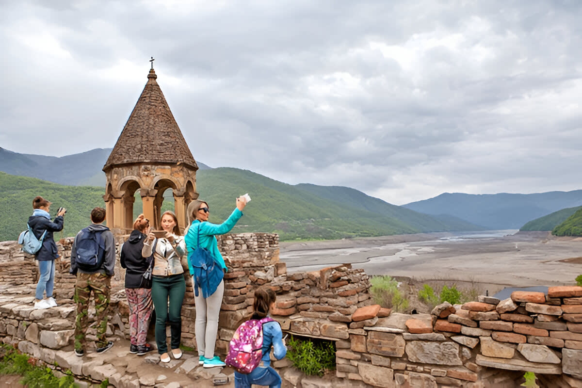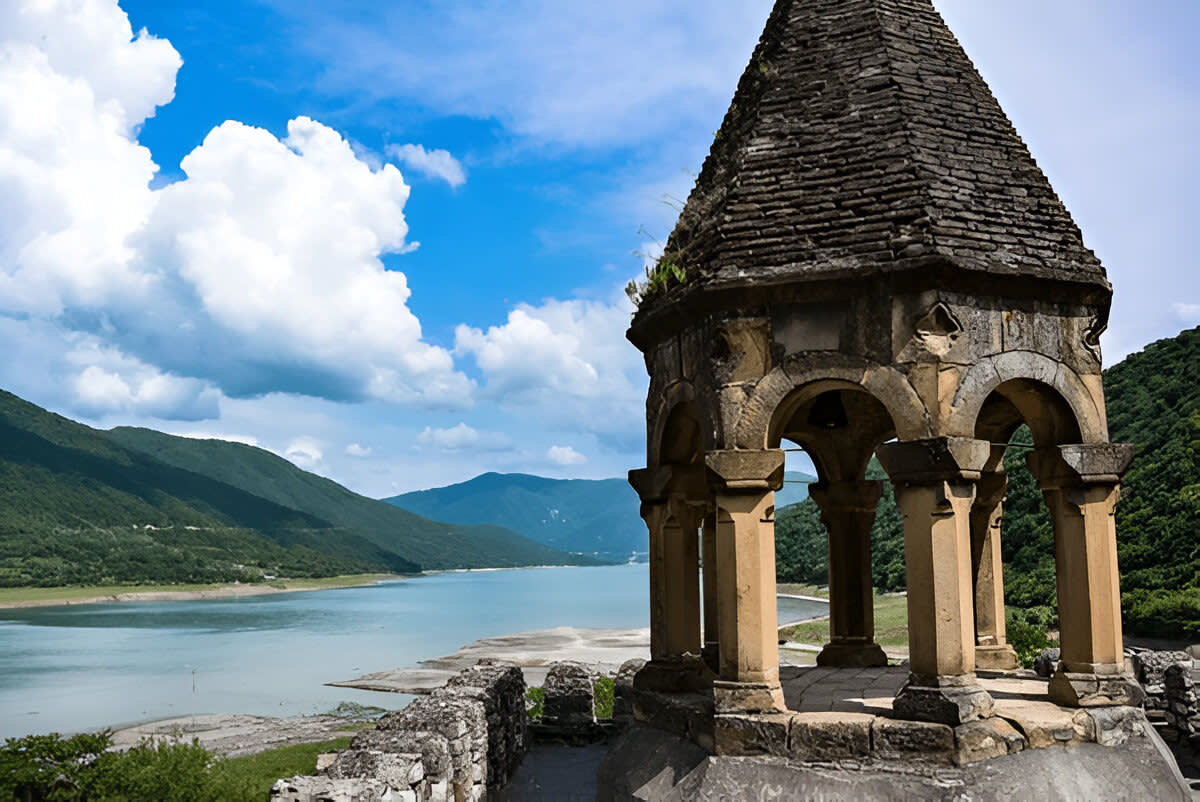 * 진발리 저수지: 코카서스 산맥을 배경으로 잔잔한 청록색 물결을 감상하세요.